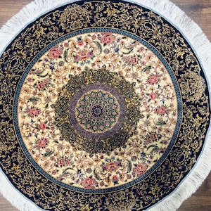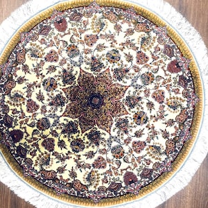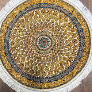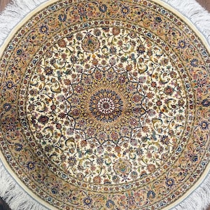* Material: Silk * Type: Handmade silk rug * Shape: Round * Color: Turquoise / Multicolor * Size: 50 x 50 cm (1.64 x 1.64 ft) * Condition: Excellent