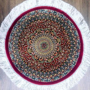 Handmade Round Silk Rug 50 cm (1.64 ft) Red Medallion Oriental Carpet Luxury Decor Rug
