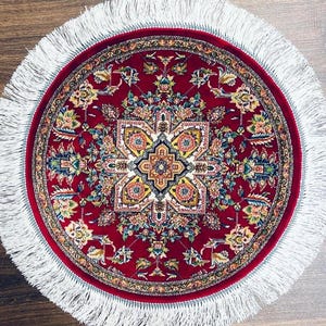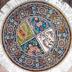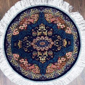 Its round shape makes it perfect as a decorative accent rug for luxury interiors or wall display.
