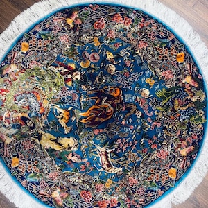 * Material: Silk * Type: Handmade rug * Shape: Round * Pattern: Floral Medallion Design * Color: Navy Blue / Multicolor * Size: 50 x 50 cm (1.64 x 1.64 ft) * Condition: Excellent
