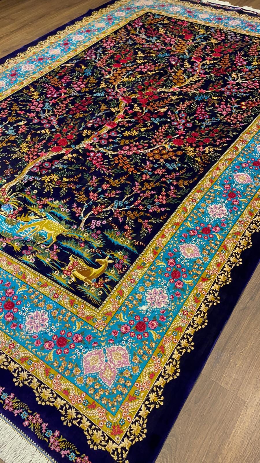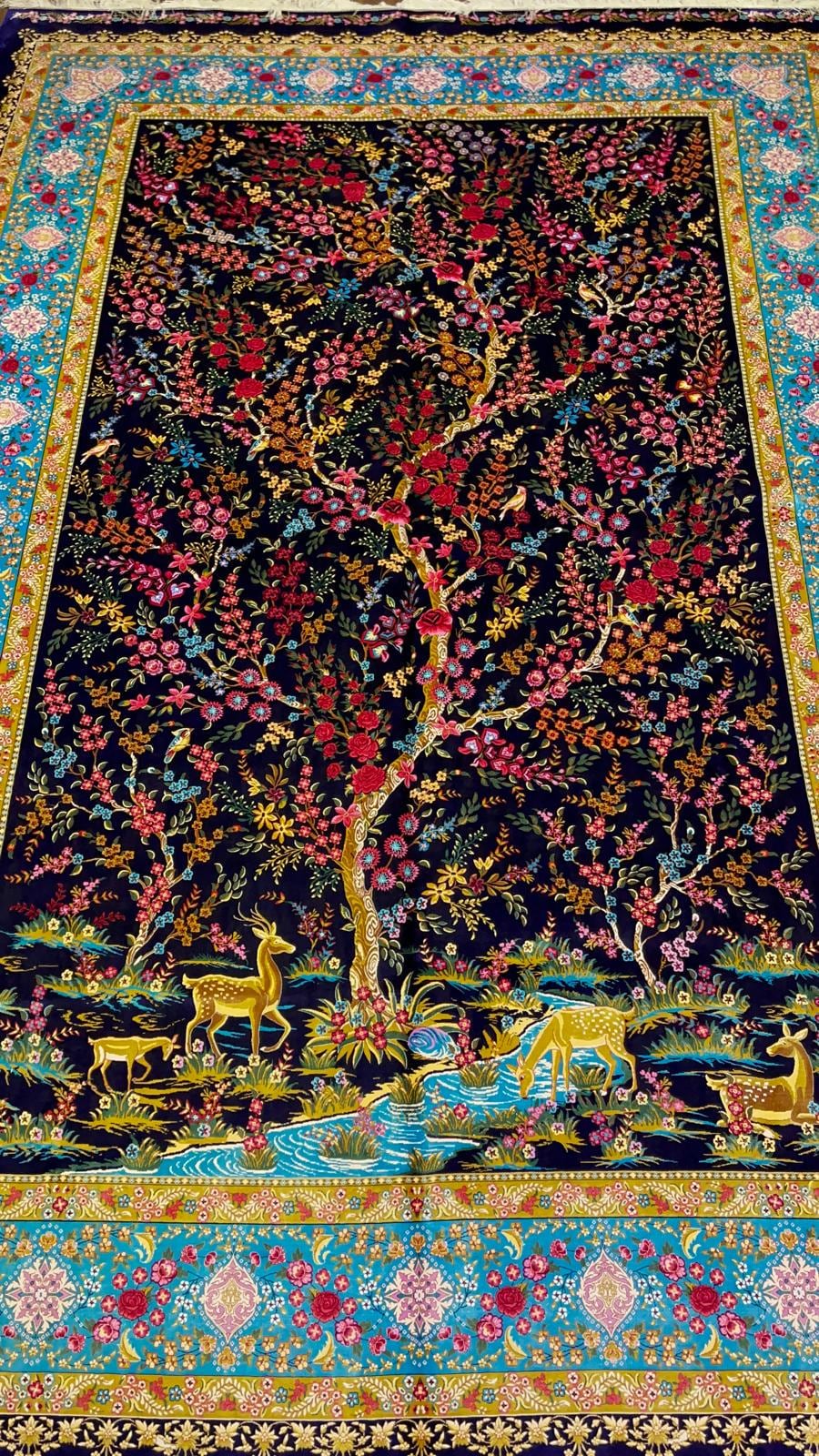 This exceptional large Turkish silk rug features the iconic Tree of Life design, symbolizing growth, harmony, and eternity.