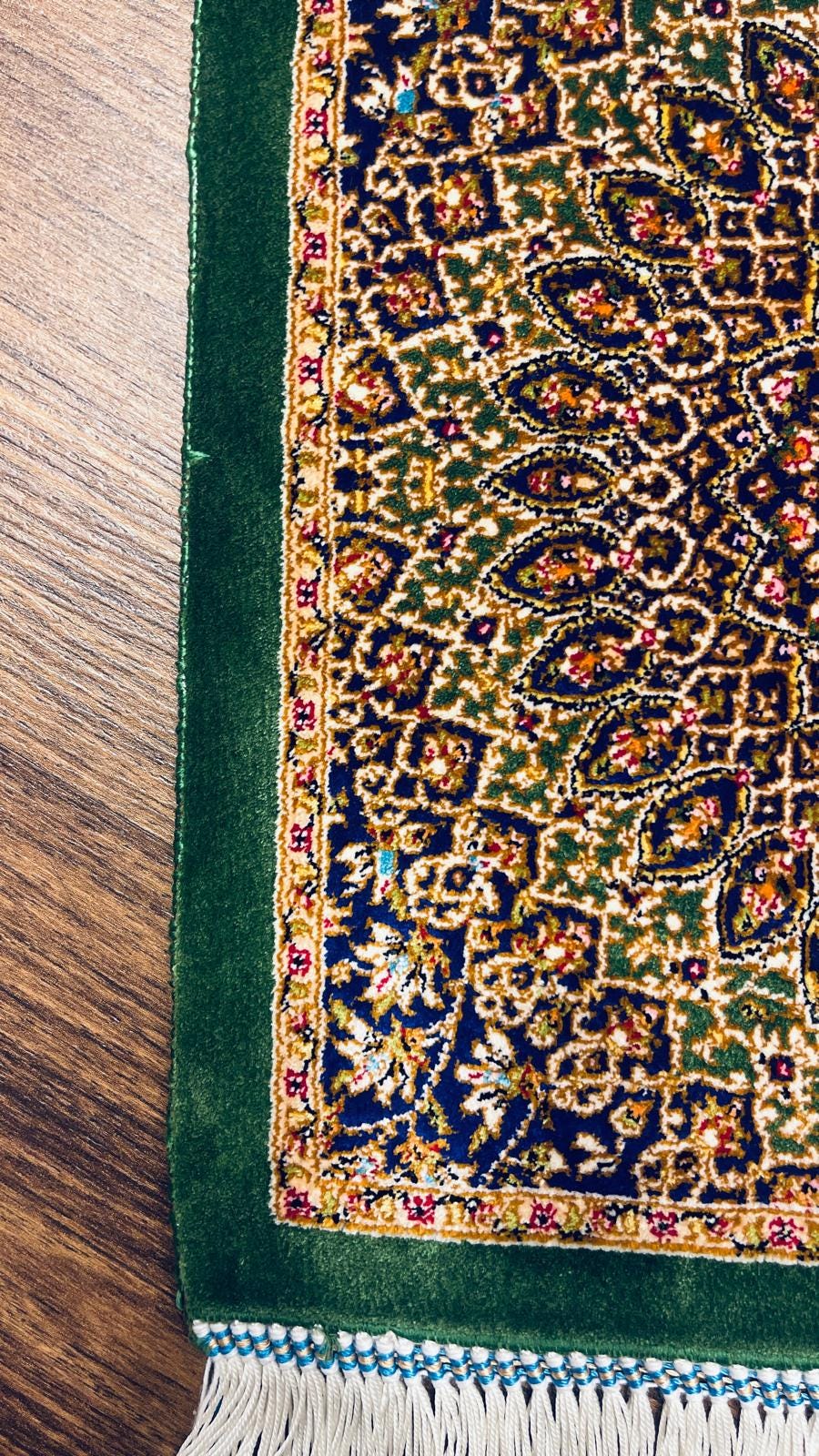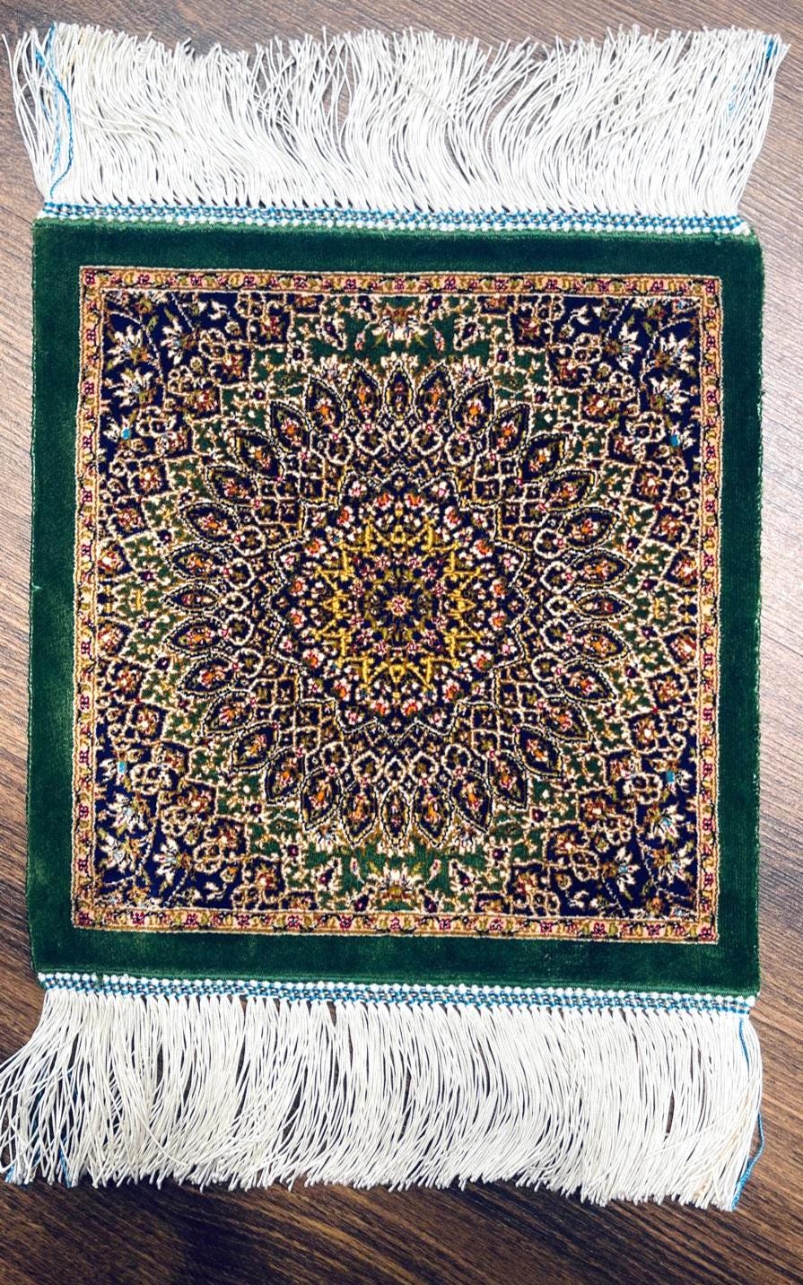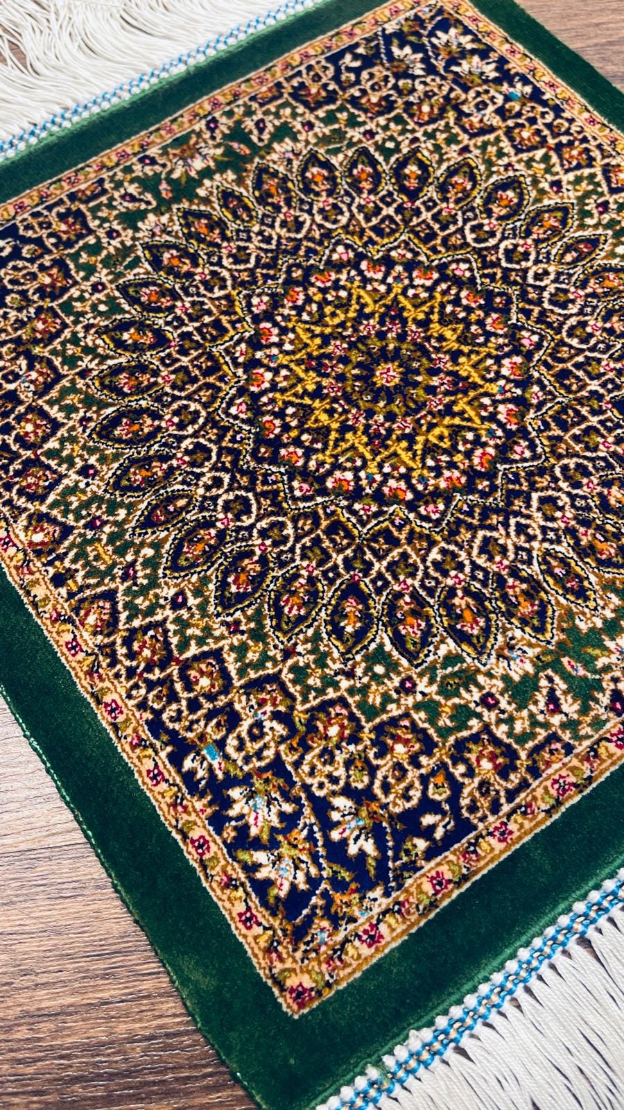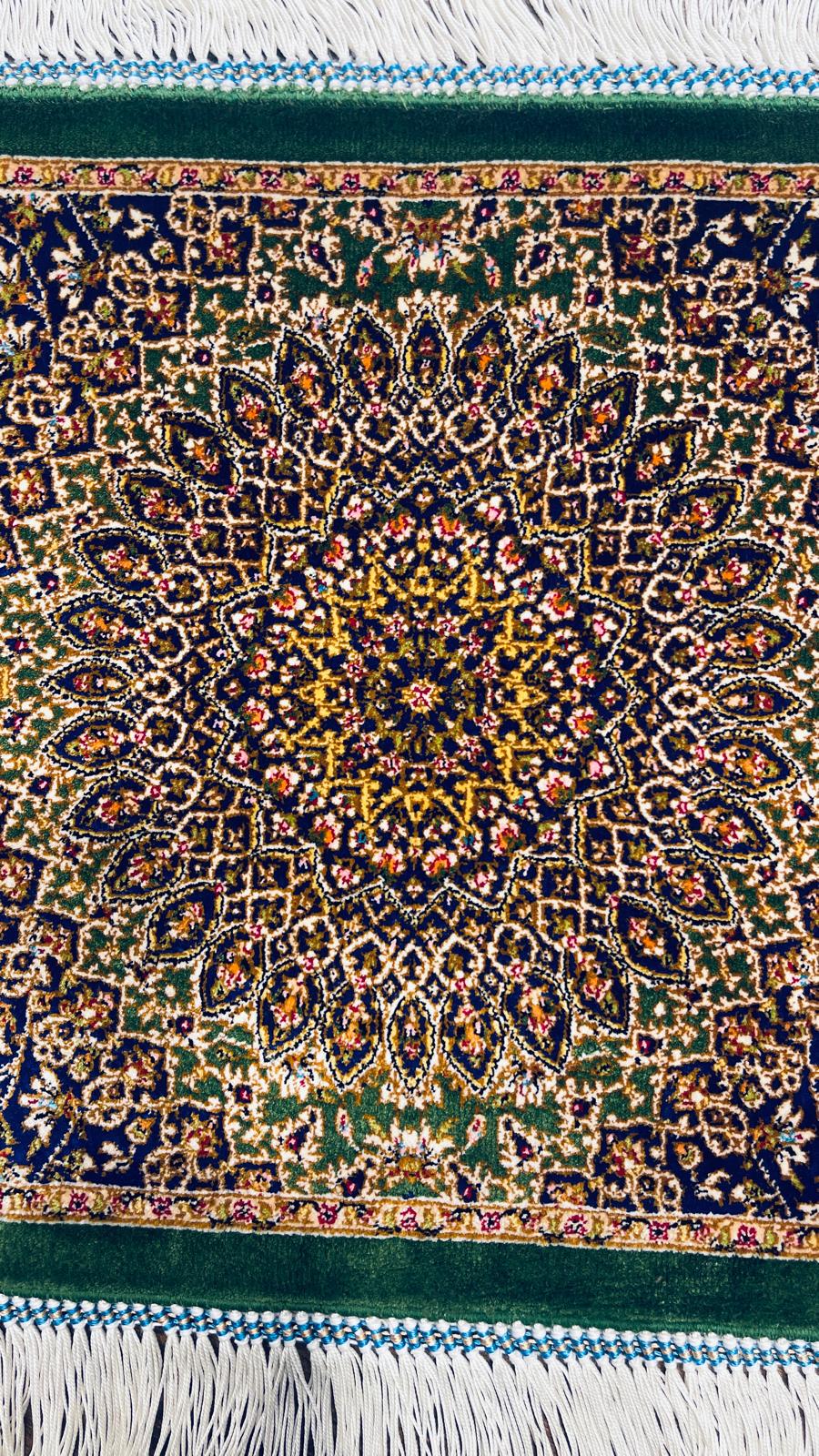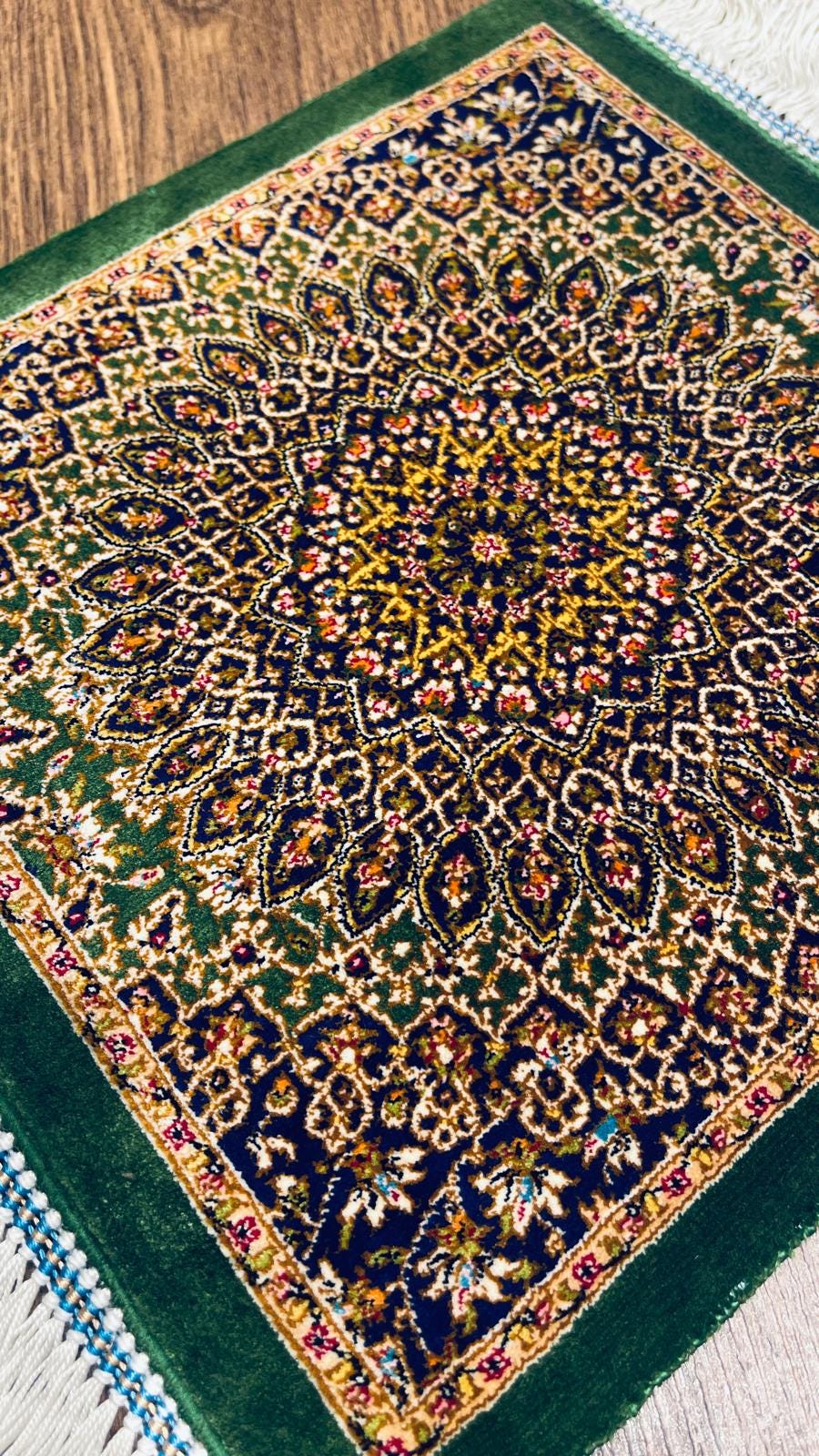 Turkish Silk Rug 30x30 cm (0.98 ft) Green Medallion Handmade Mini Rug