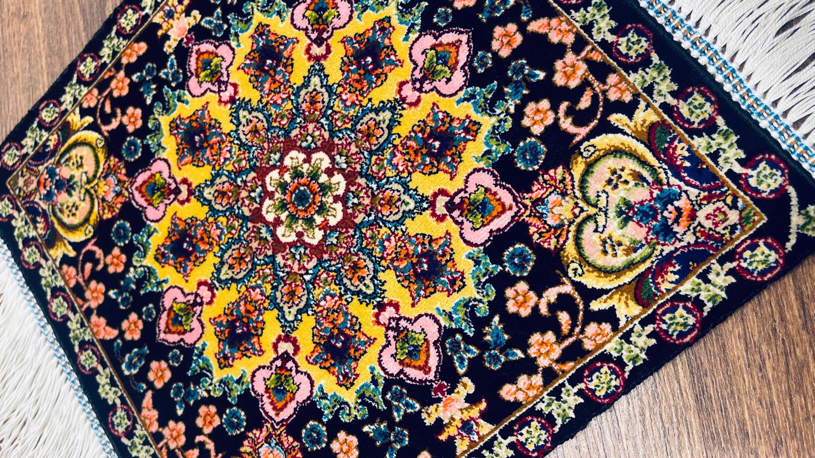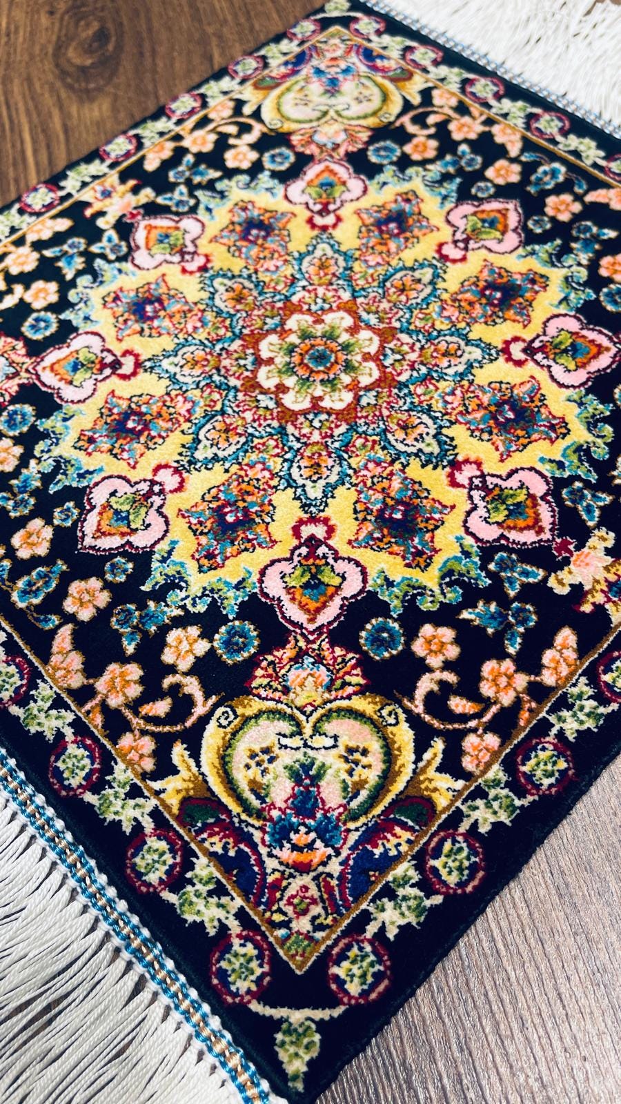Perfect for wall decor, collectors, or decorative accents, this handmade mini rug adds color and character to any space.