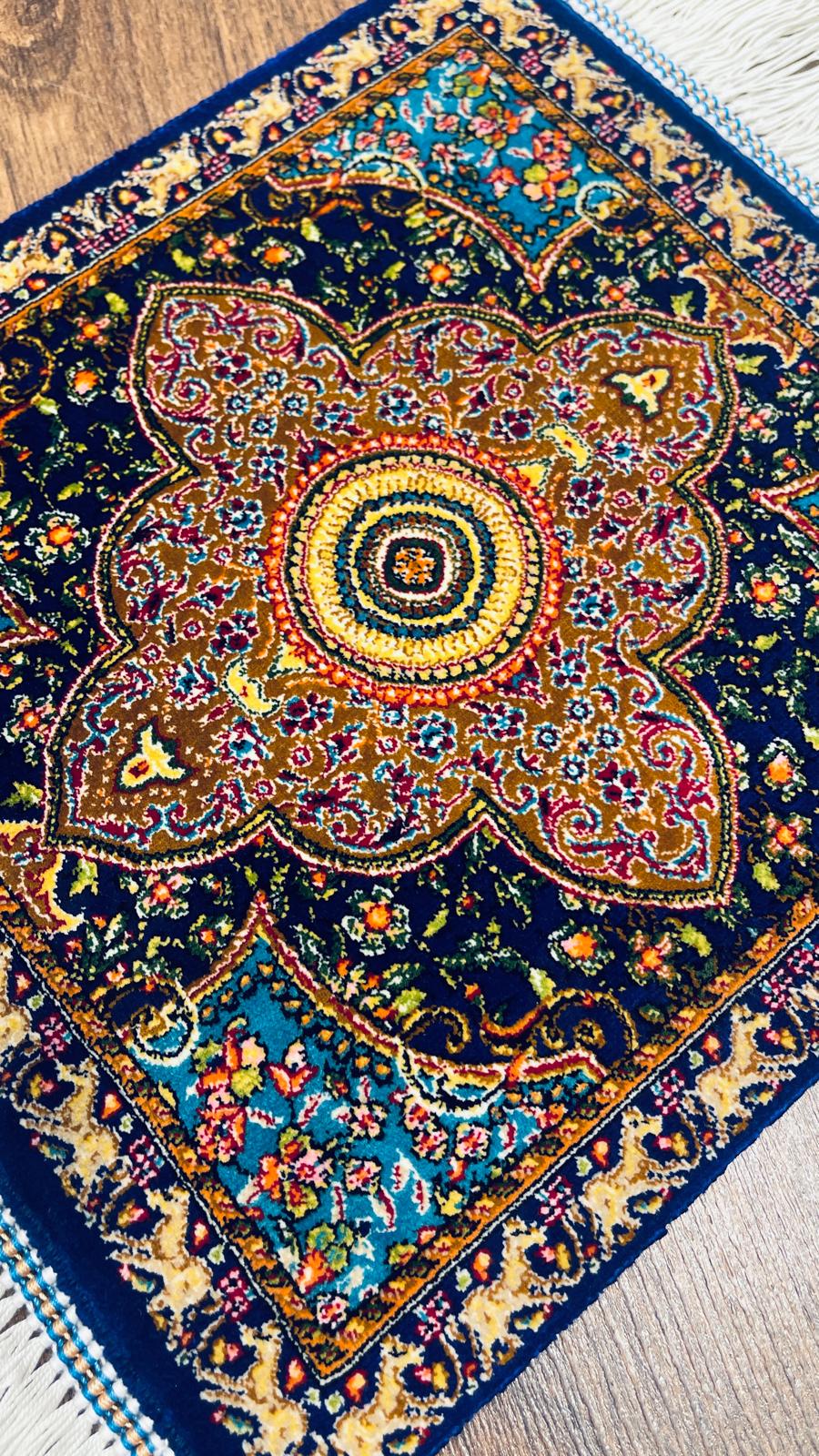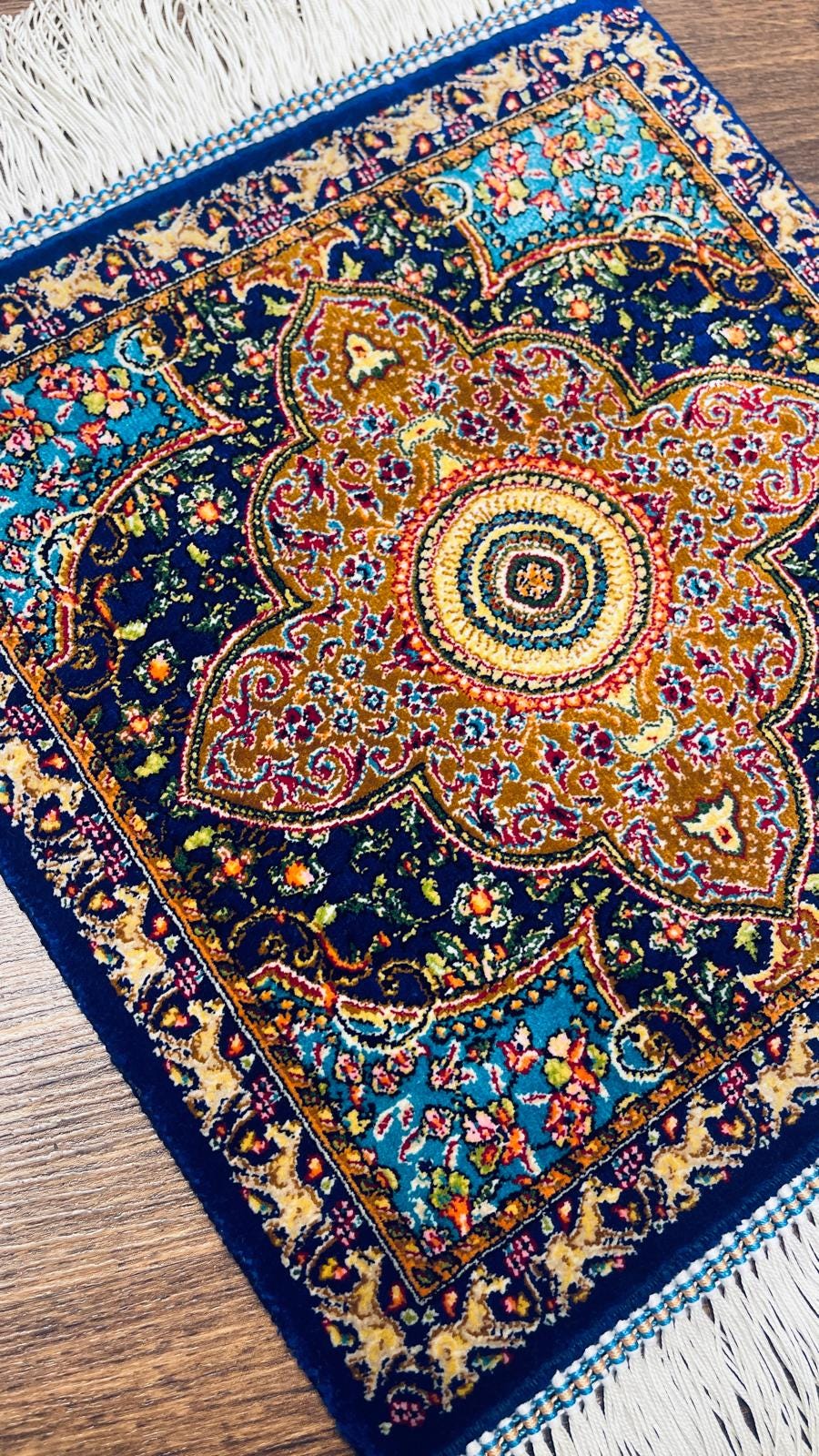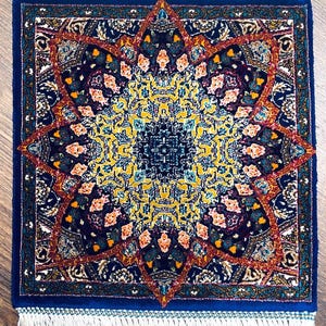 Perfect for wall decor, collectors, or decorative accents, this handmade mini rug adds warmth and character to any space.