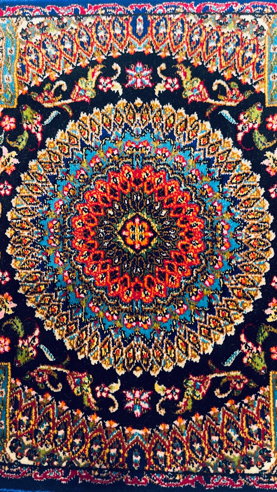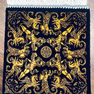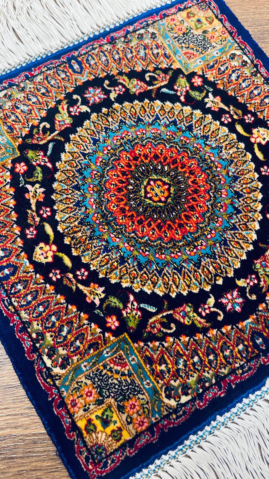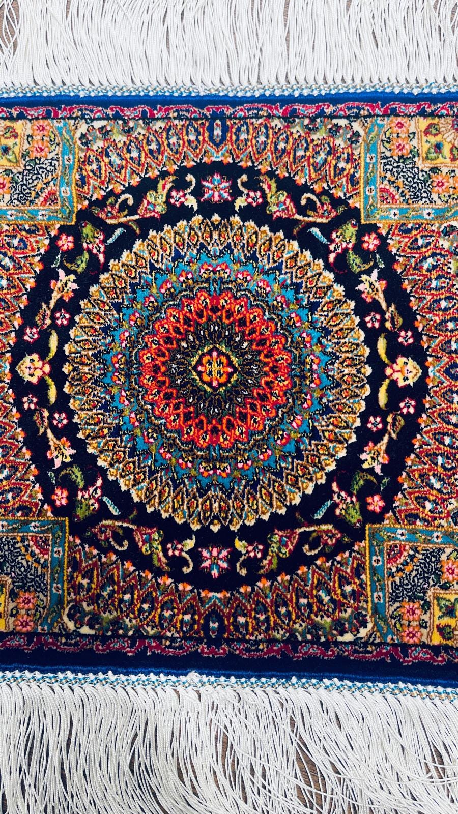 Perfect for decorative use, wall art, or collectors, this handmade mini rug adds elegance and color to any space.