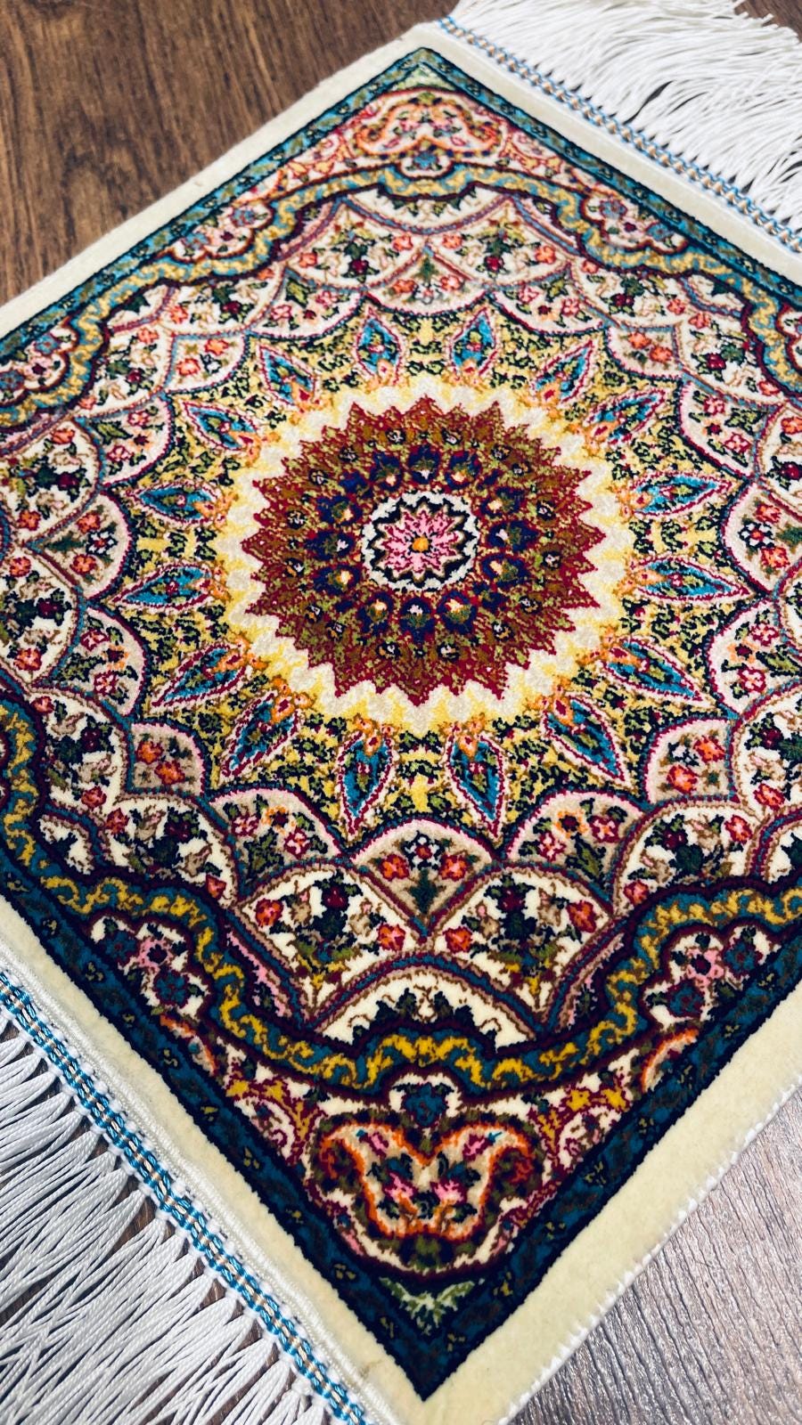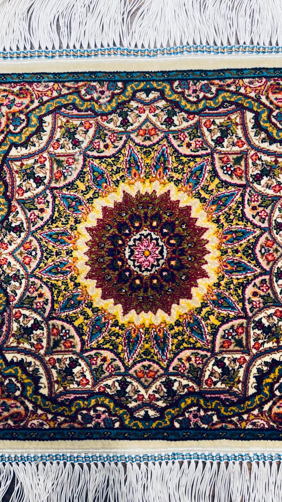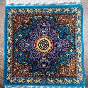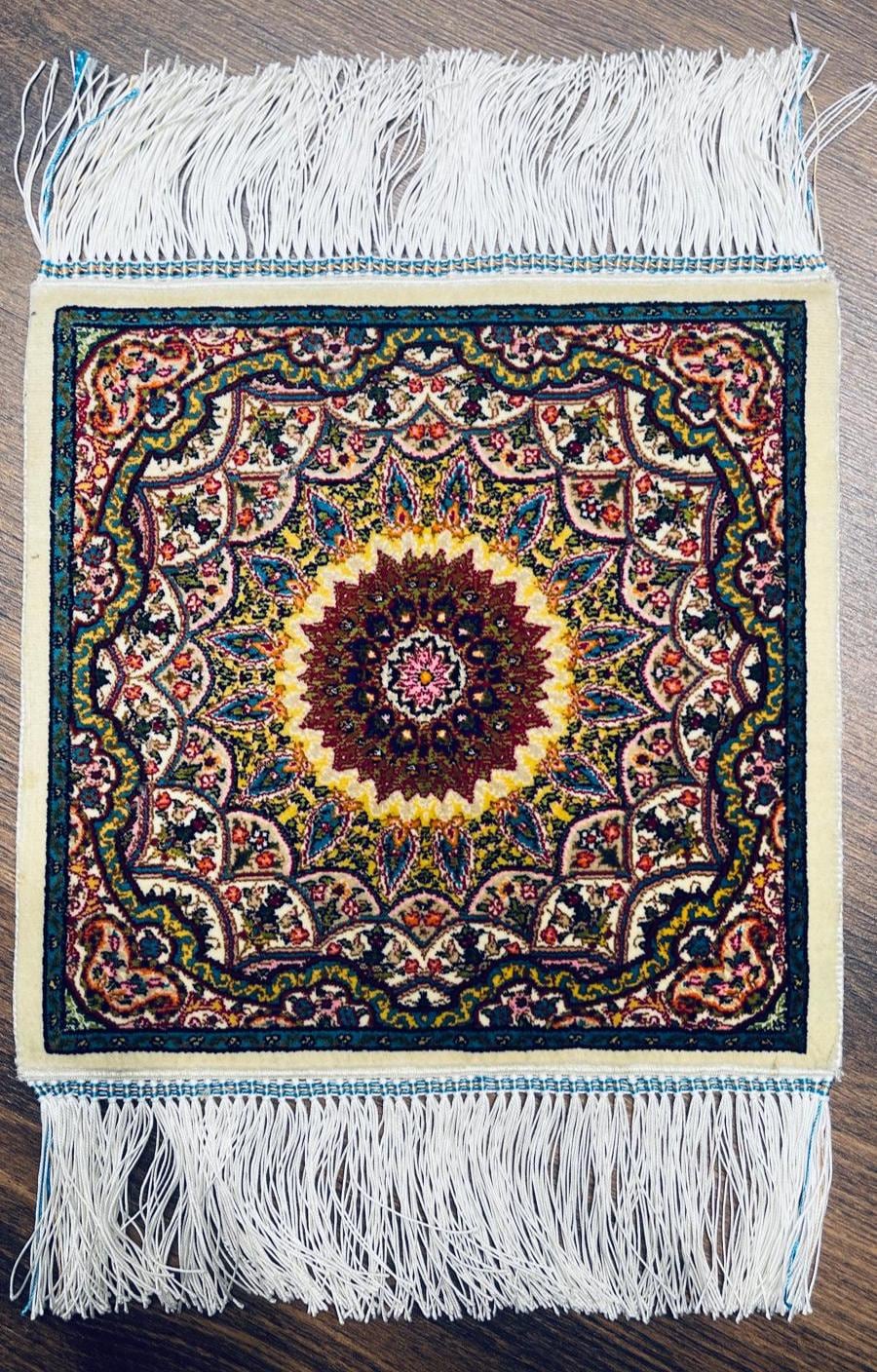 Turkish Silk Rug 30x30 cm (0.98 ft) Handmade Floral Medallion Mini Rug