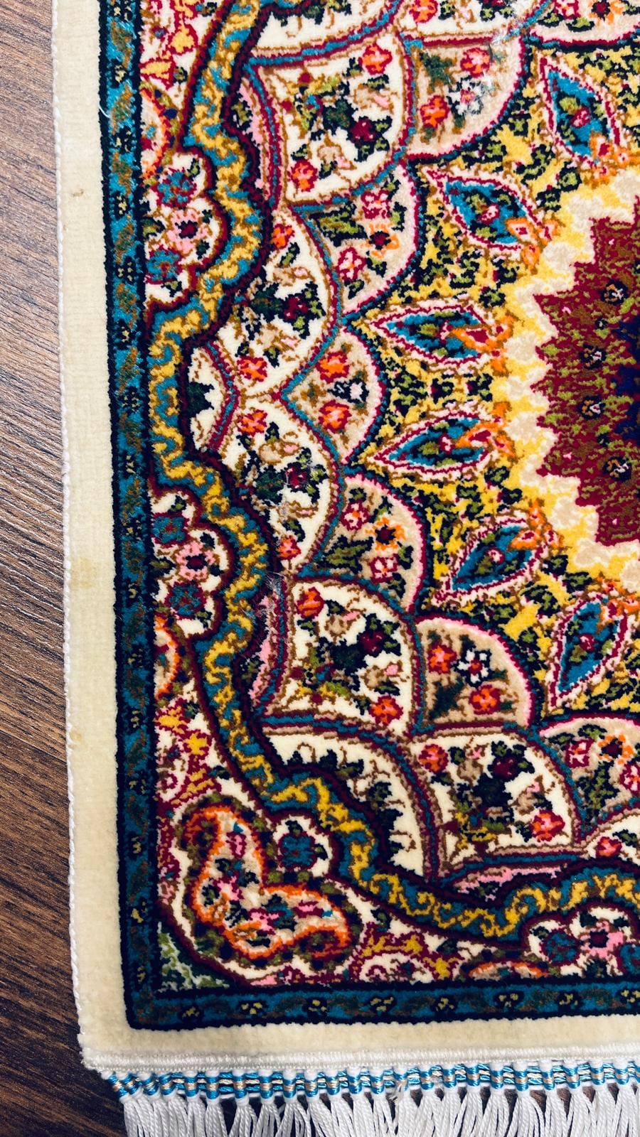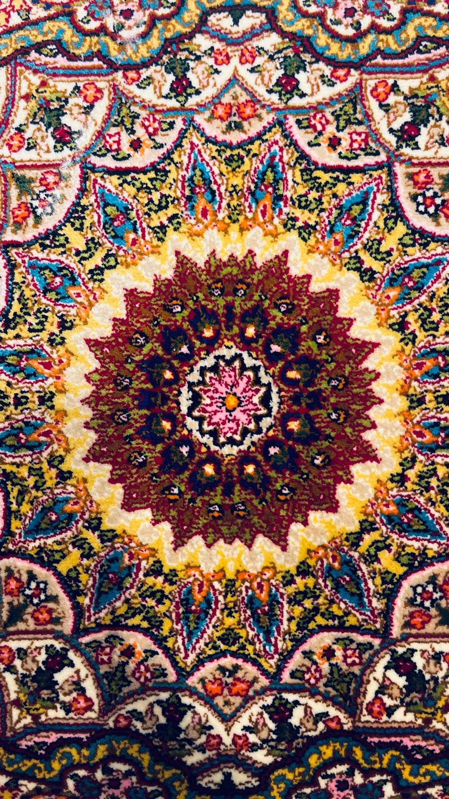 This elegant Turkish silk rug features a classic floral medallion design with rich, detailed patterns and vibrant colors.