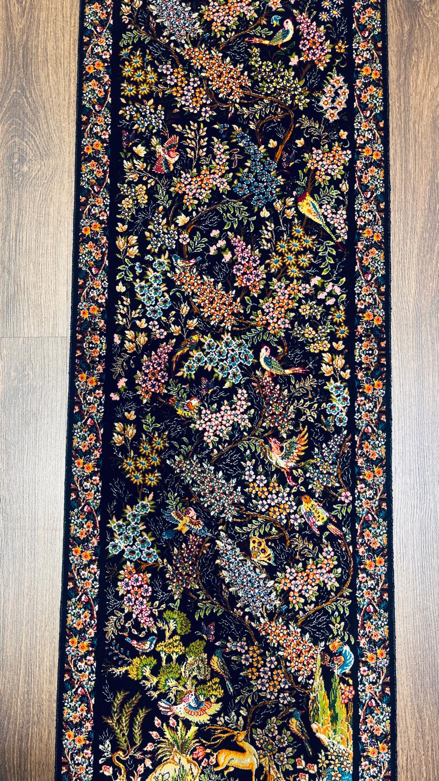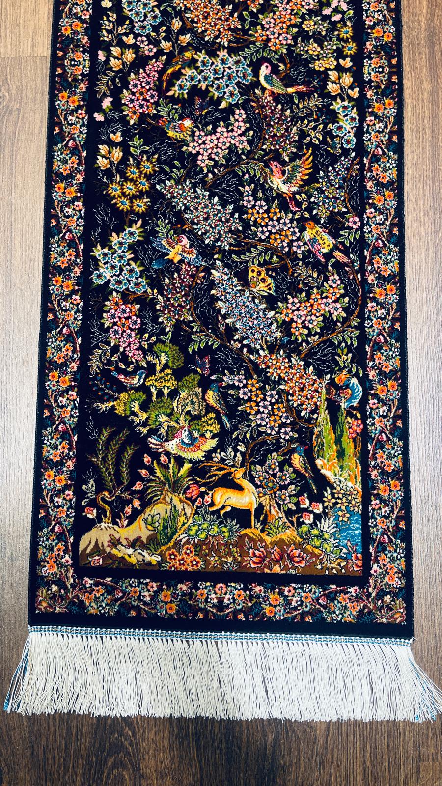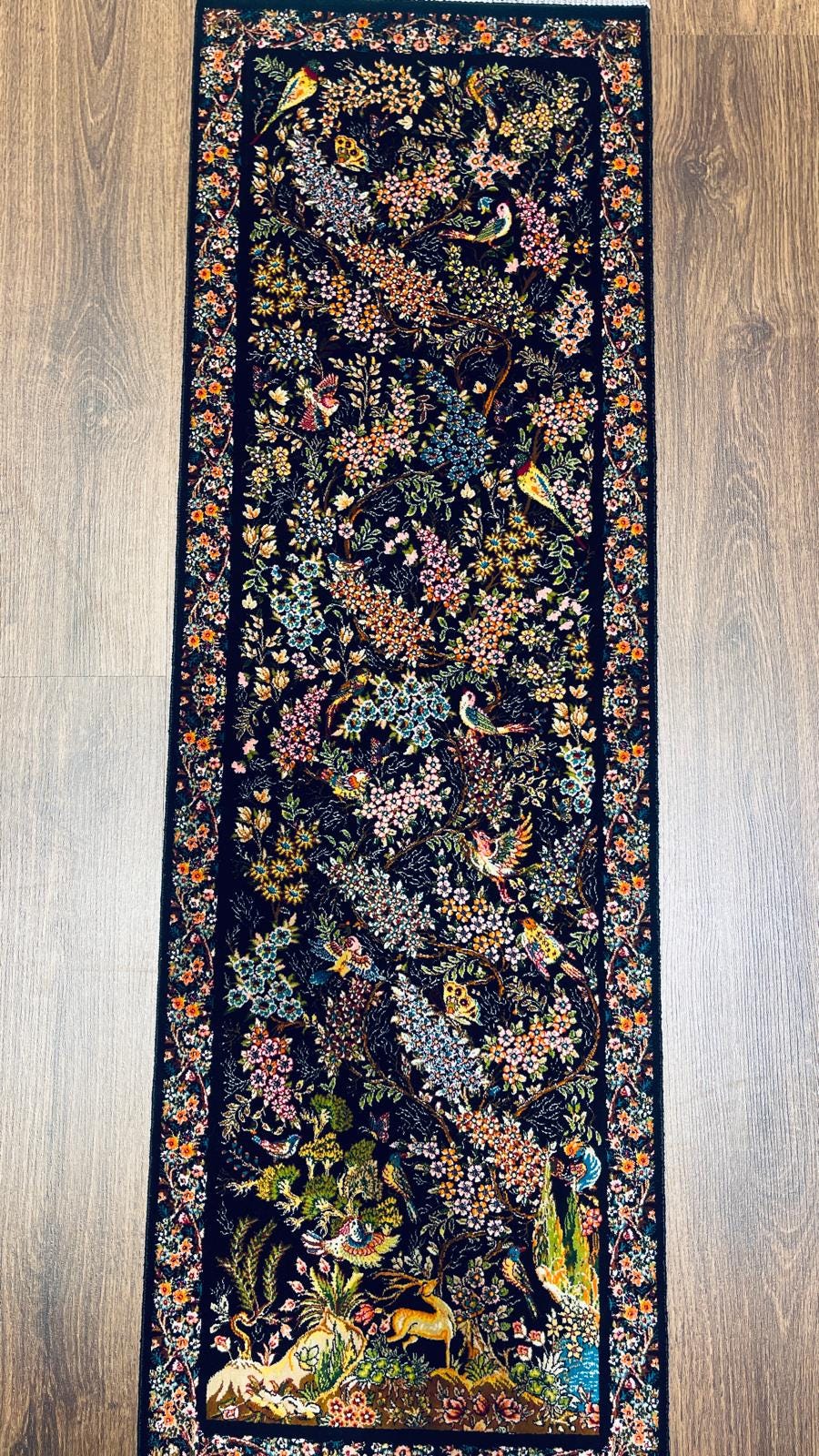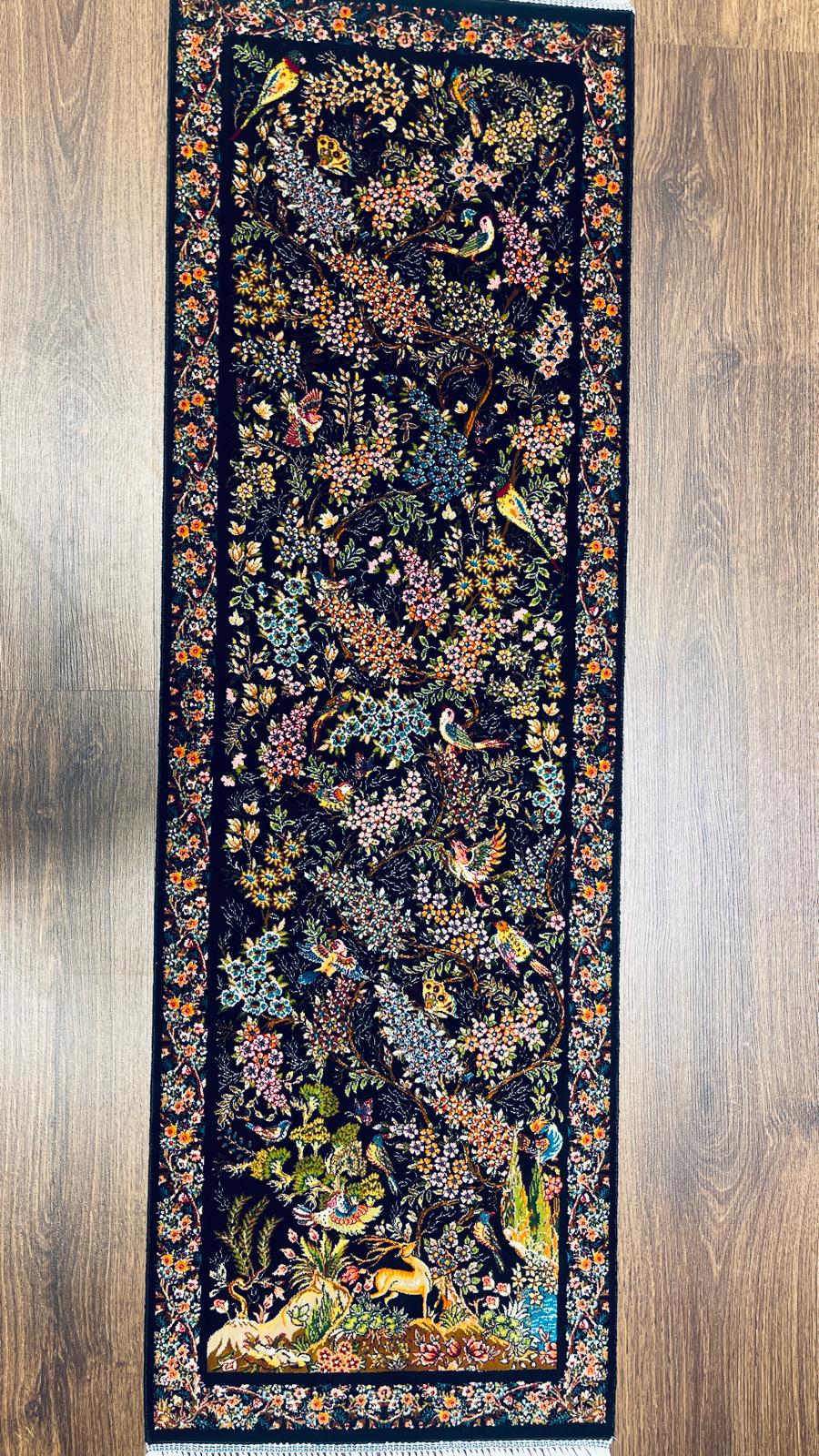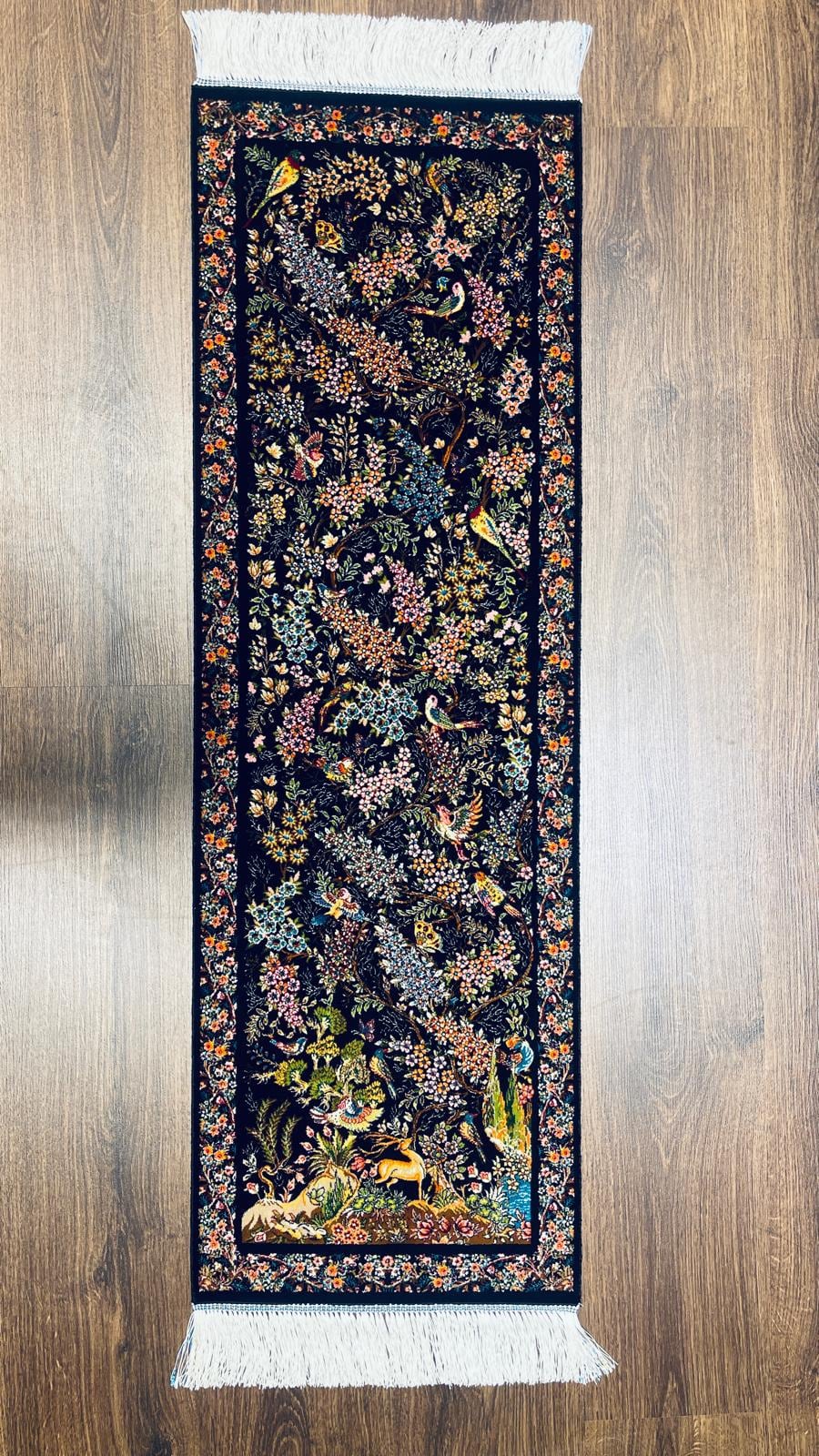 1.31x3.94 ft Handmade Turkish Silk Runner Rug – Tree of Life Birds Floral Luxury Carpet