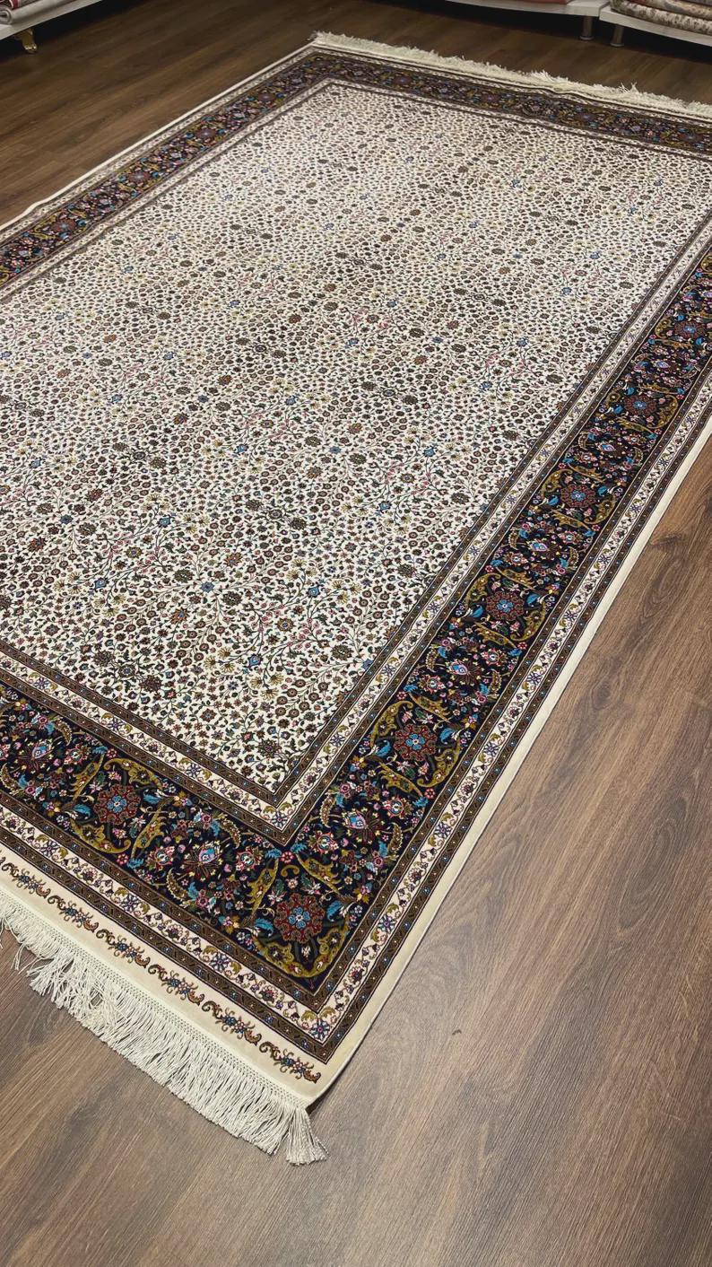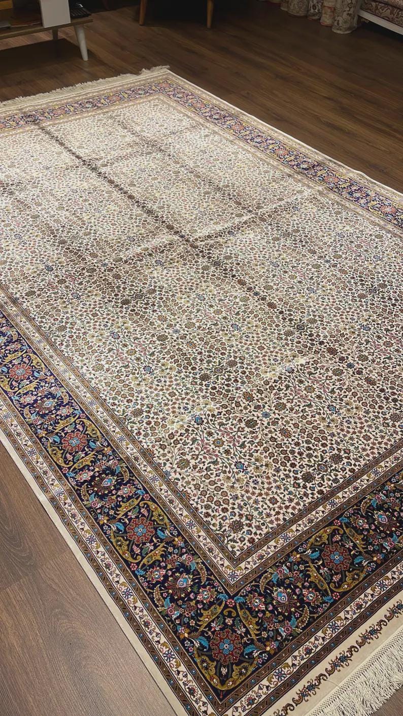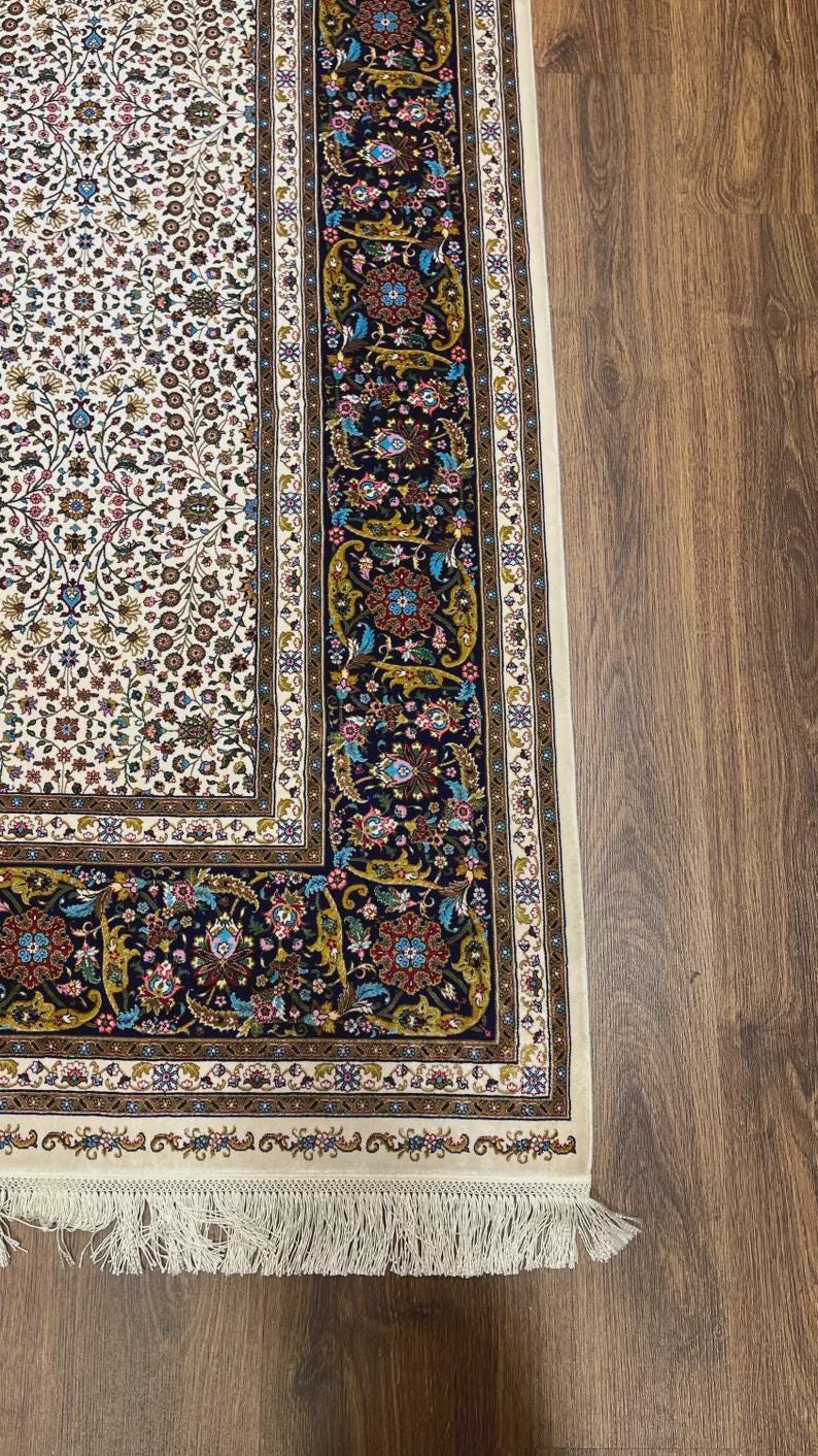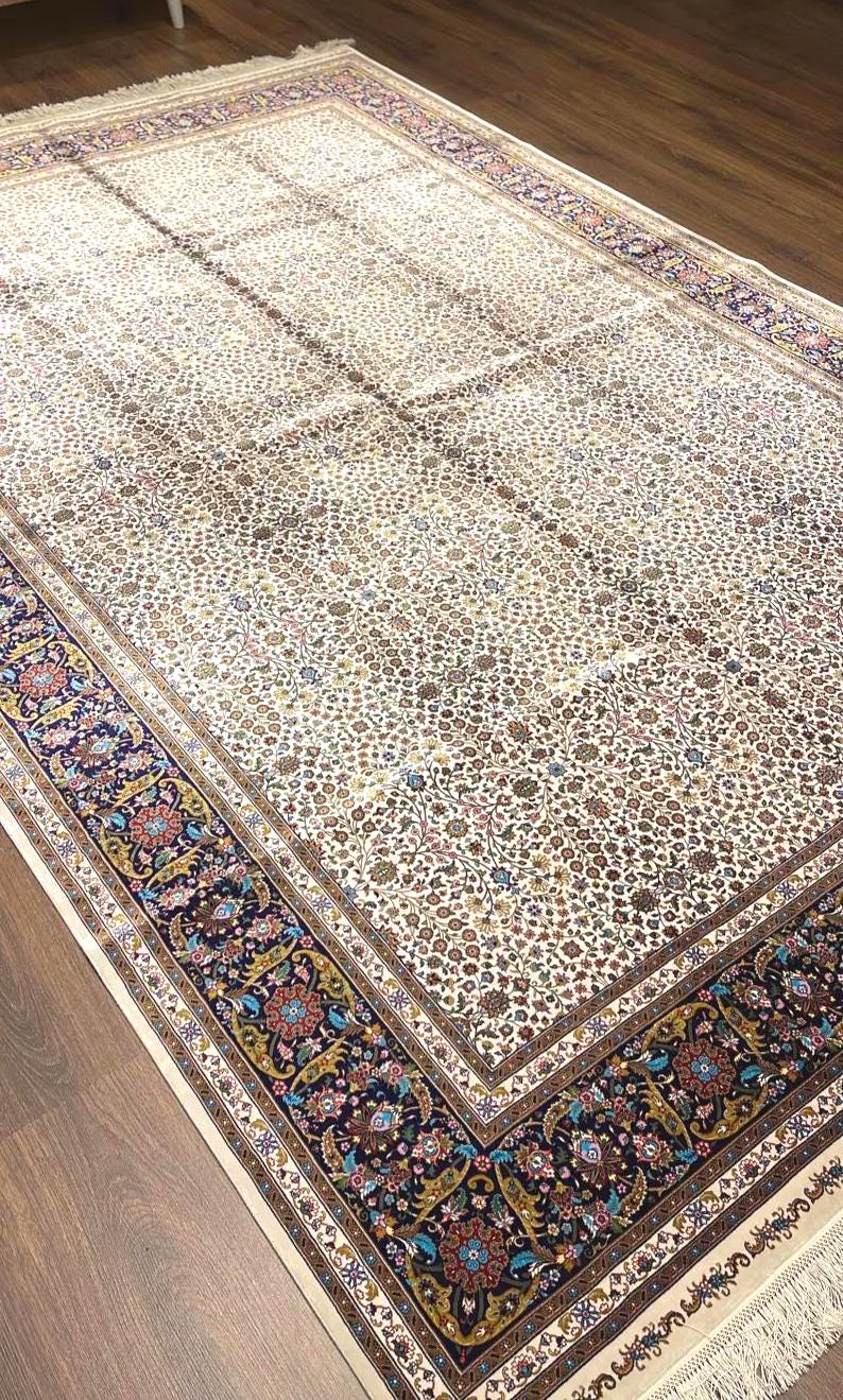 Bring refined elegance and timeless beauty into your home with this luxury Turkish silk-on-silk carpet, featuring a delicate all-over floral design on a soft cream background. This piece offers a perfect balance of sophistication and traditional craftsmanship.
