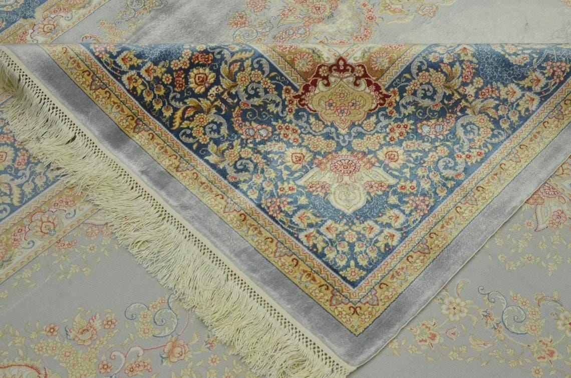 This carpet is crafted from 100% natural silk, offering an exceptionally soft texture, smooth surface, and elegant luminous shine. The silk-on-silk construction enhances the clarity of the intricate patterns, creating a detailed and visually rich appearance.