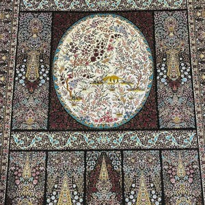 • Origin: Turkey • Material: 100% Silk (Silk on Silk) • Technique: Fine weaving & hand-finished • Pattern: Floral Medallion • Colors: Ivory, Rose, Gold, Black • Condition: Brand New