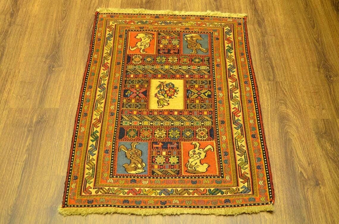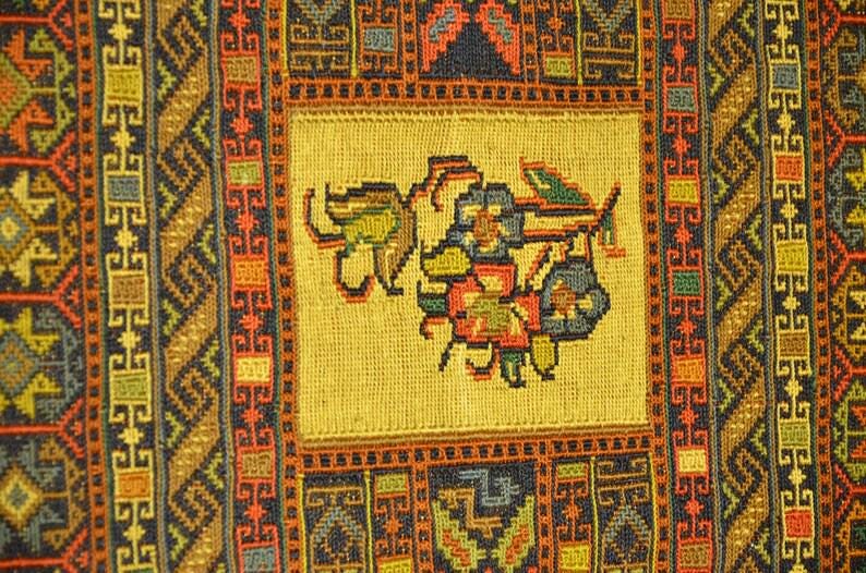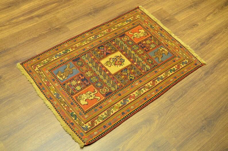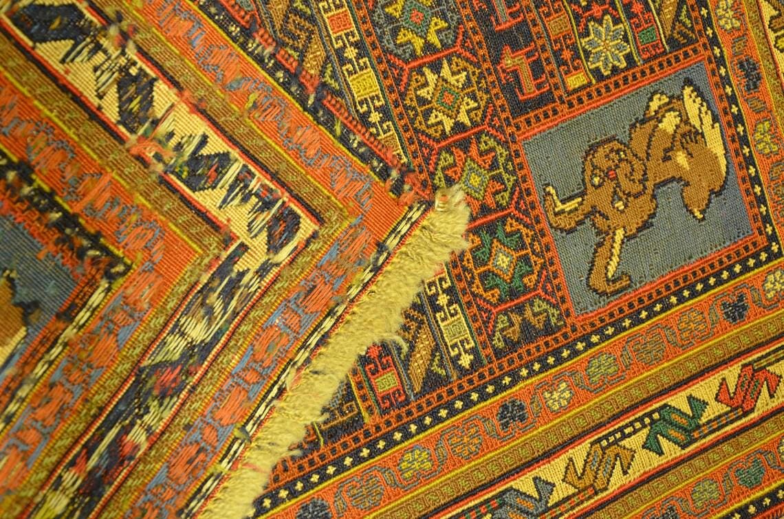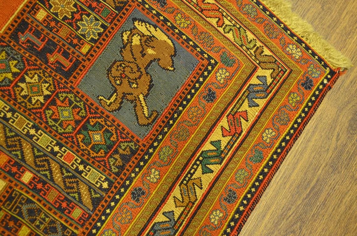This exceptional rug stands out with its traditional Anatolian storytelling design, where each figure and geometric element reflects themes of protection, strength, and daily life. The charming animal figures make this piece especially collectible and highly desirable among rug enthusiasts.