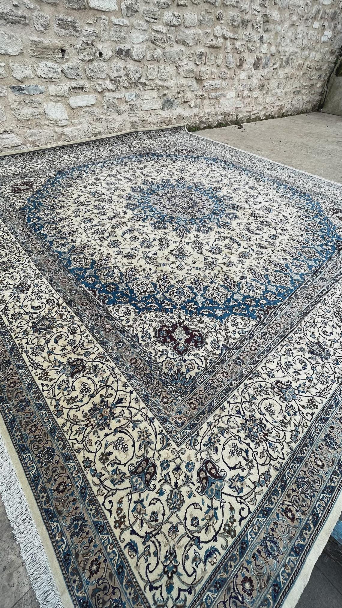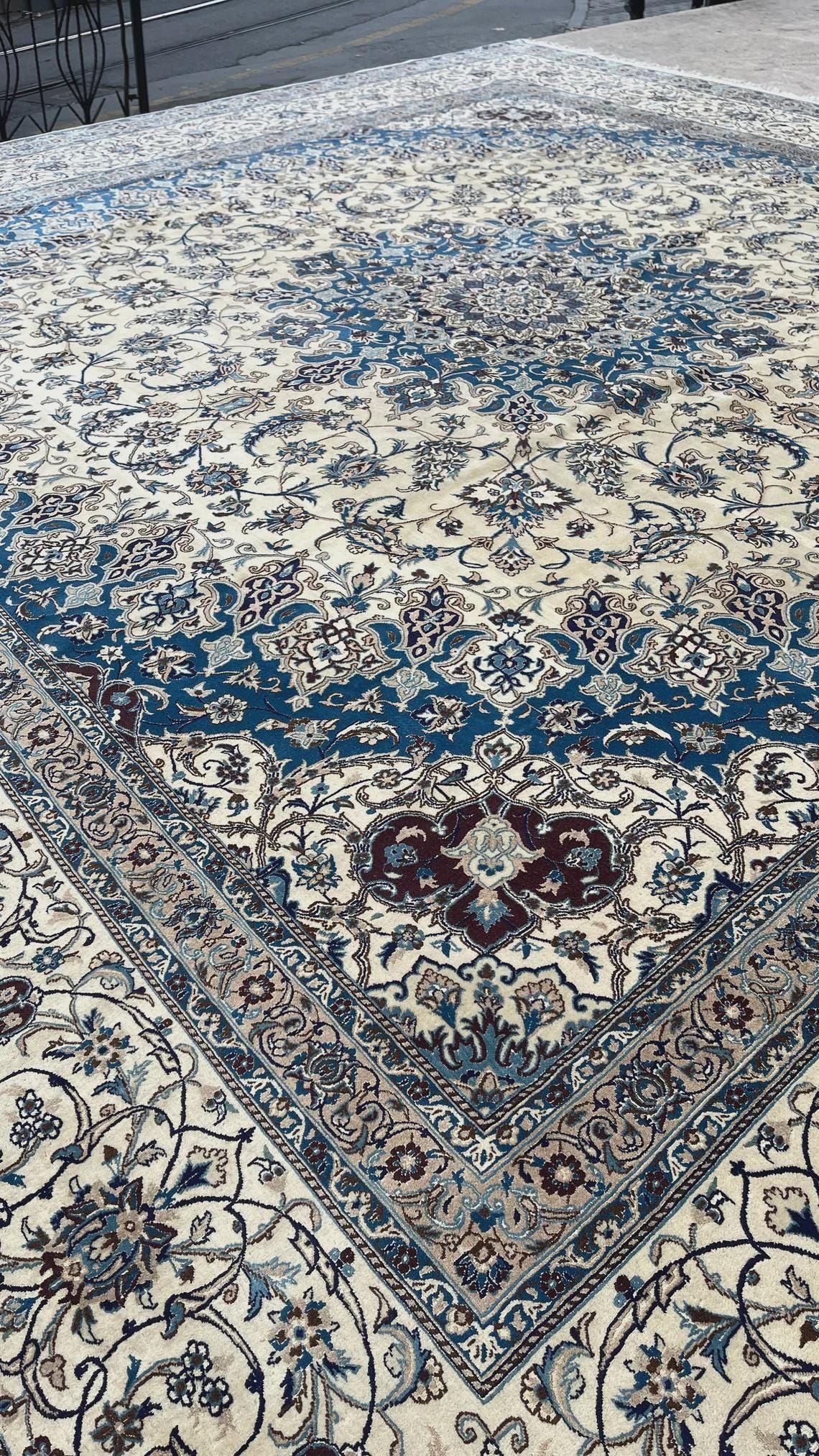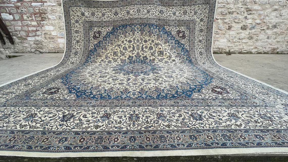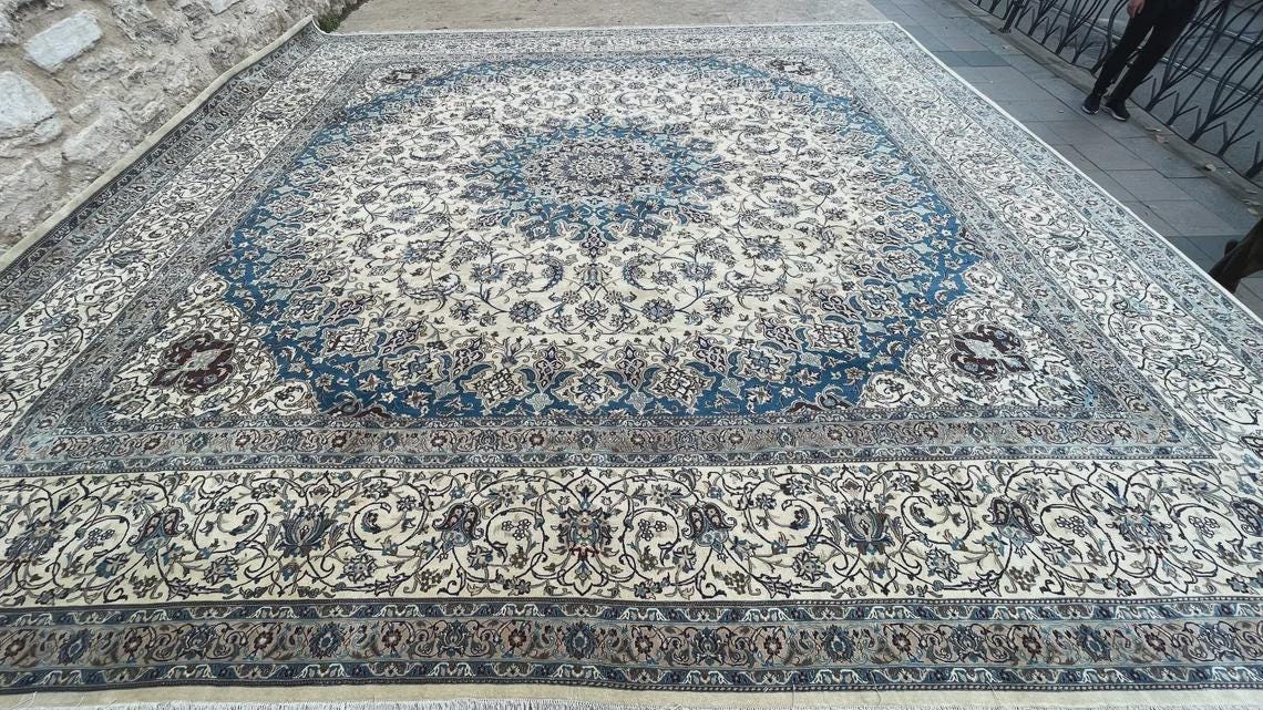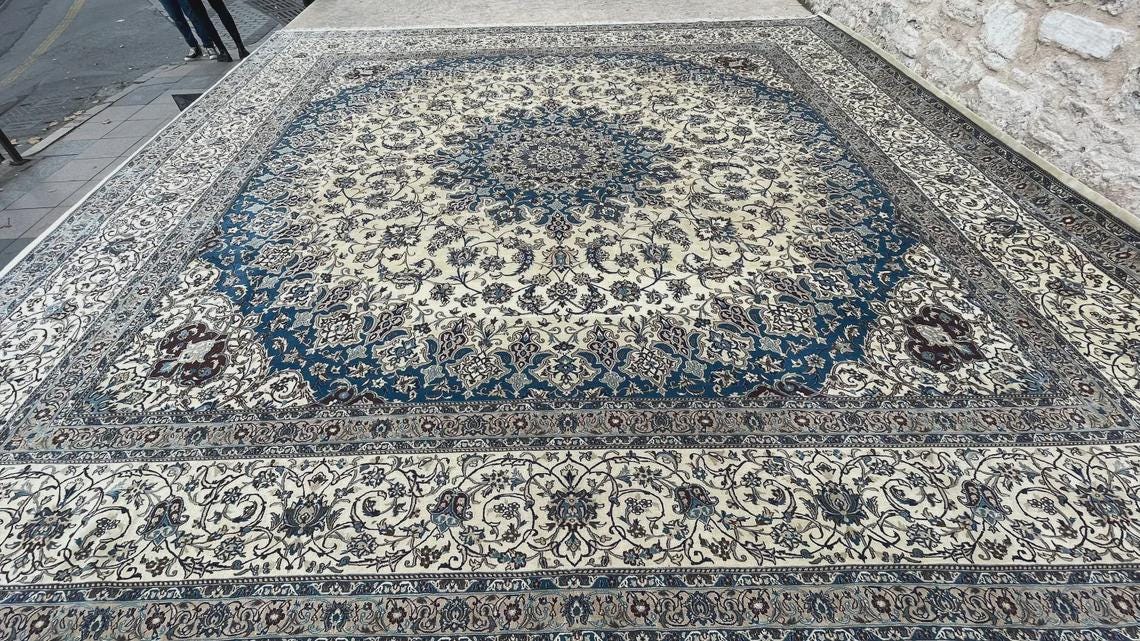 Its rare square form and impressive size make it perfect for grand living rooms, large halls, luxury interiors, or statement spaces. This is not just a rug, but a centerpiece that brings sophistication, harmony, and artistic heritage into your home.