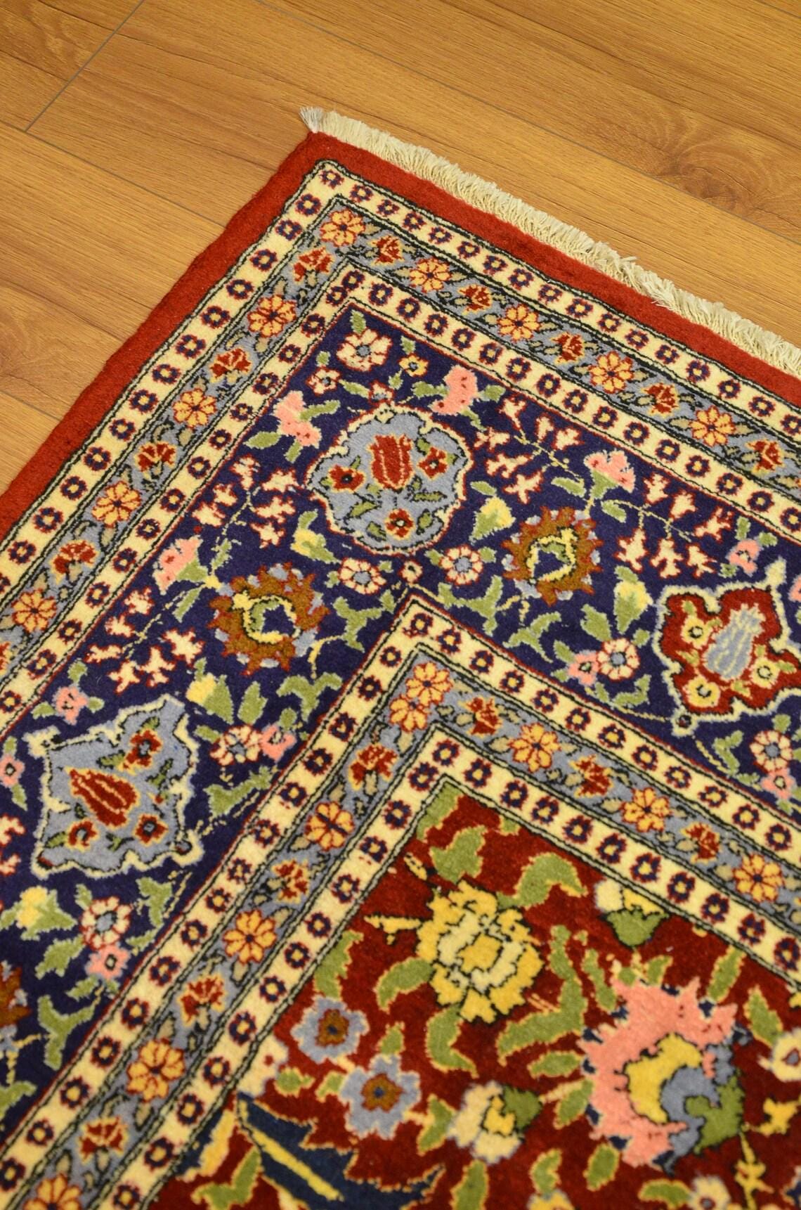 • Origin: Turkey (Anatolian Region) • Type: Vintage Turkish Rug • Technique: Hand Knotted • Material: Wool • Design: Floral Pattern • Colors: Red, Blue, Multicolor • Piece: One of a Kind