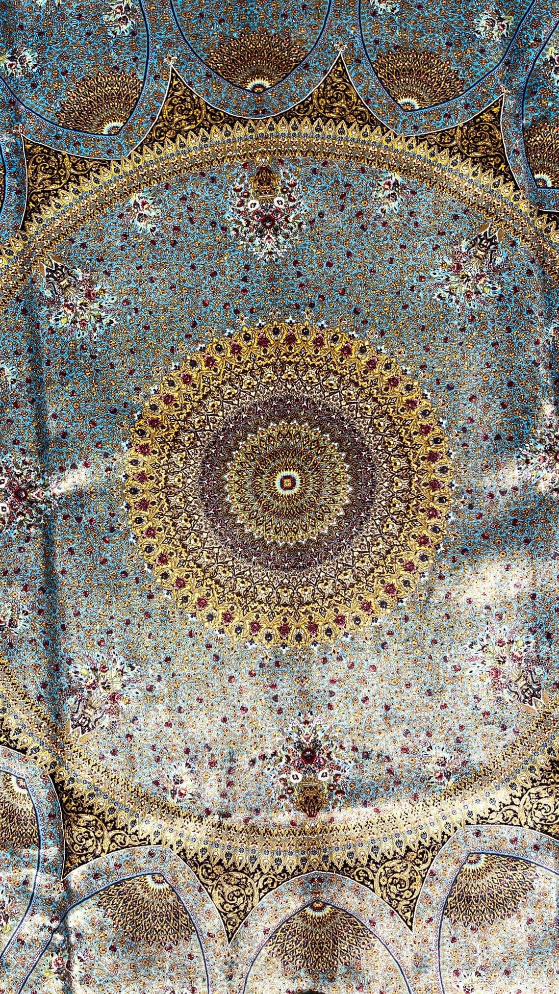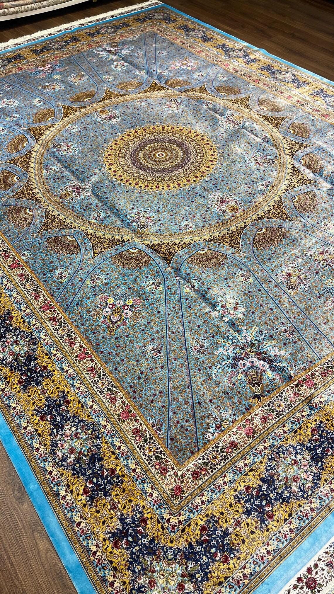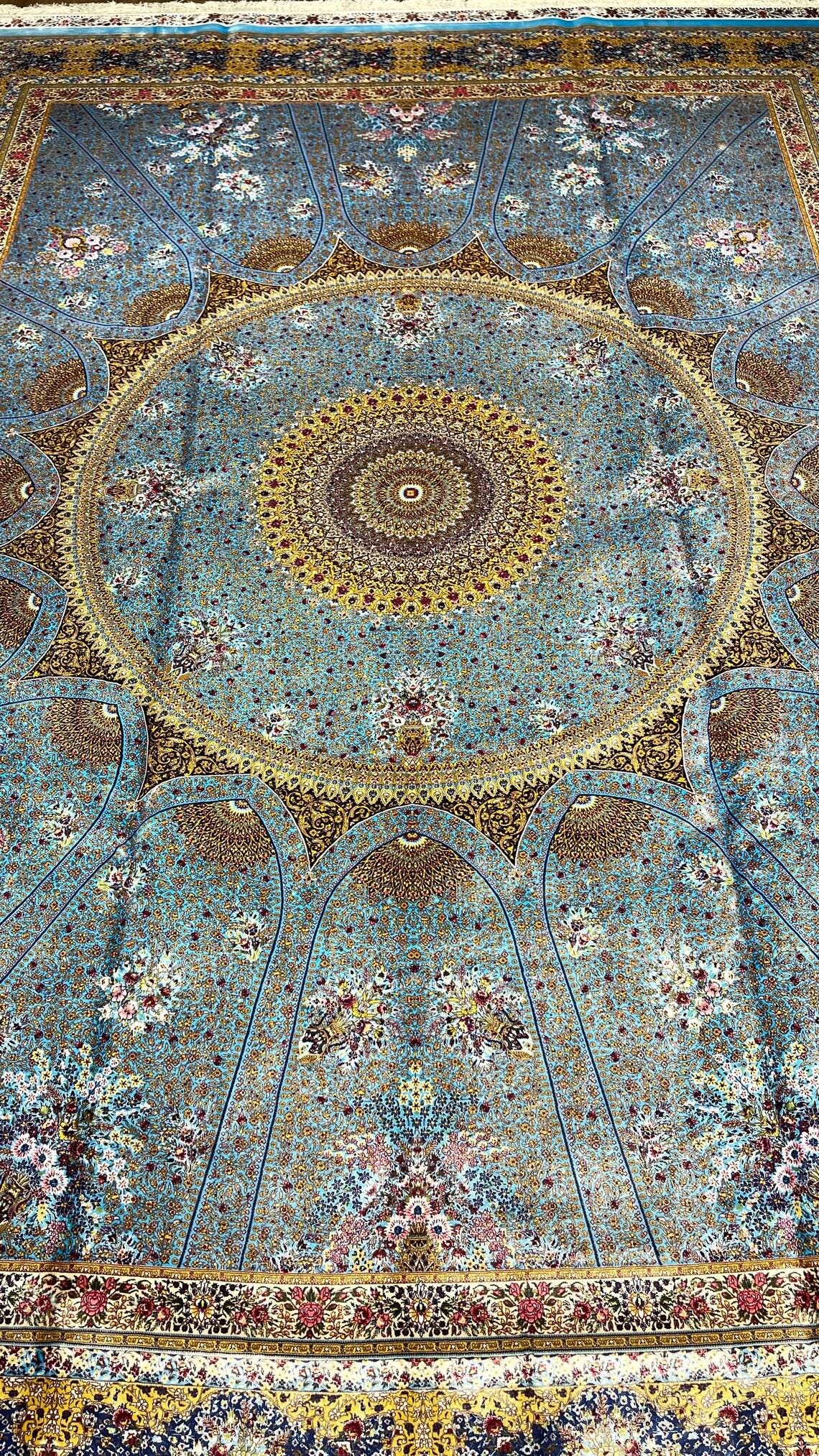 Elevate your space with this exquisite oversized Turkish silk rug, inspired by classic Ottoman palace designs. Featuring a breathtaking central medallion and intricate floral detailing, this piece reflects the elegance and sophistication of traditional Turkish artistry.