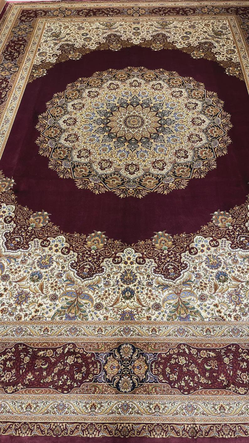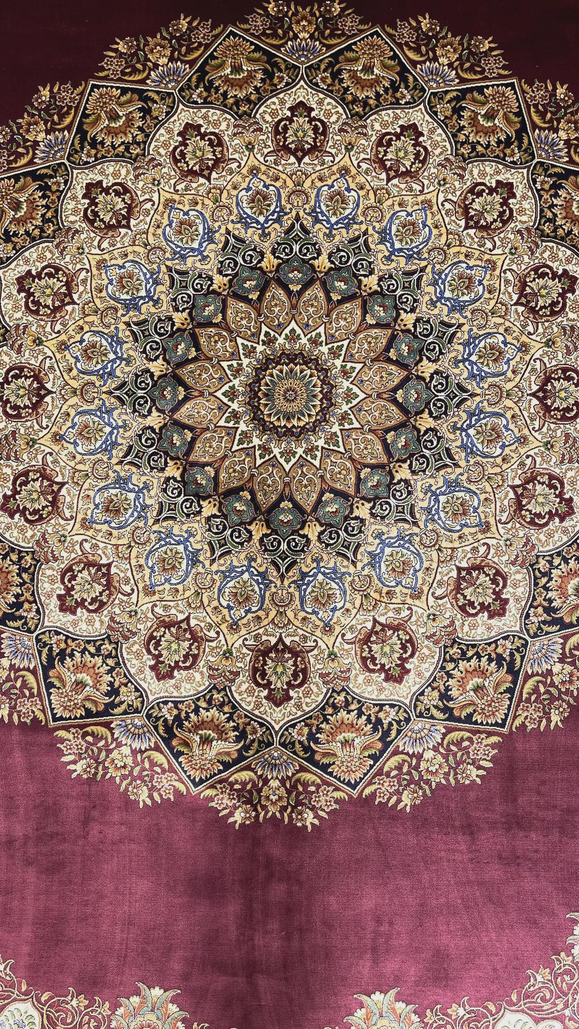 Add timeless elegance and luxury to your space with this stunning handmade Turkish silk rug. Featuring a rich burgundy field and an intricate central medallion, this piece reflects the sophistication of classic Ottoman palace designs.