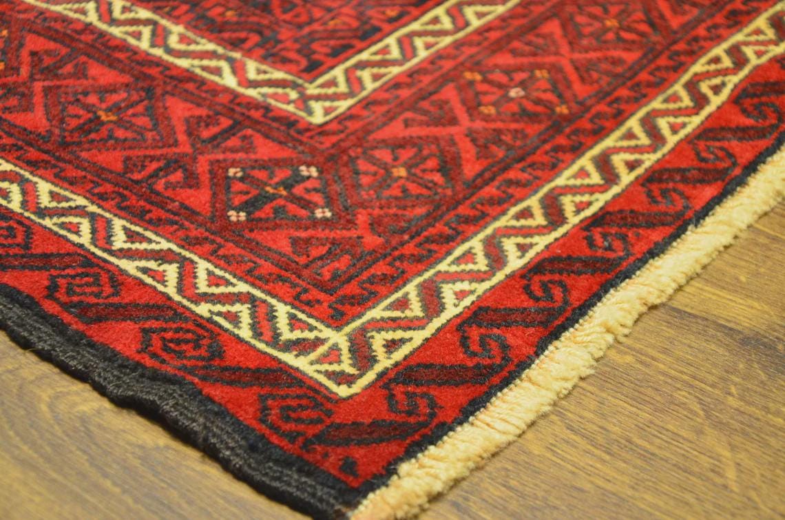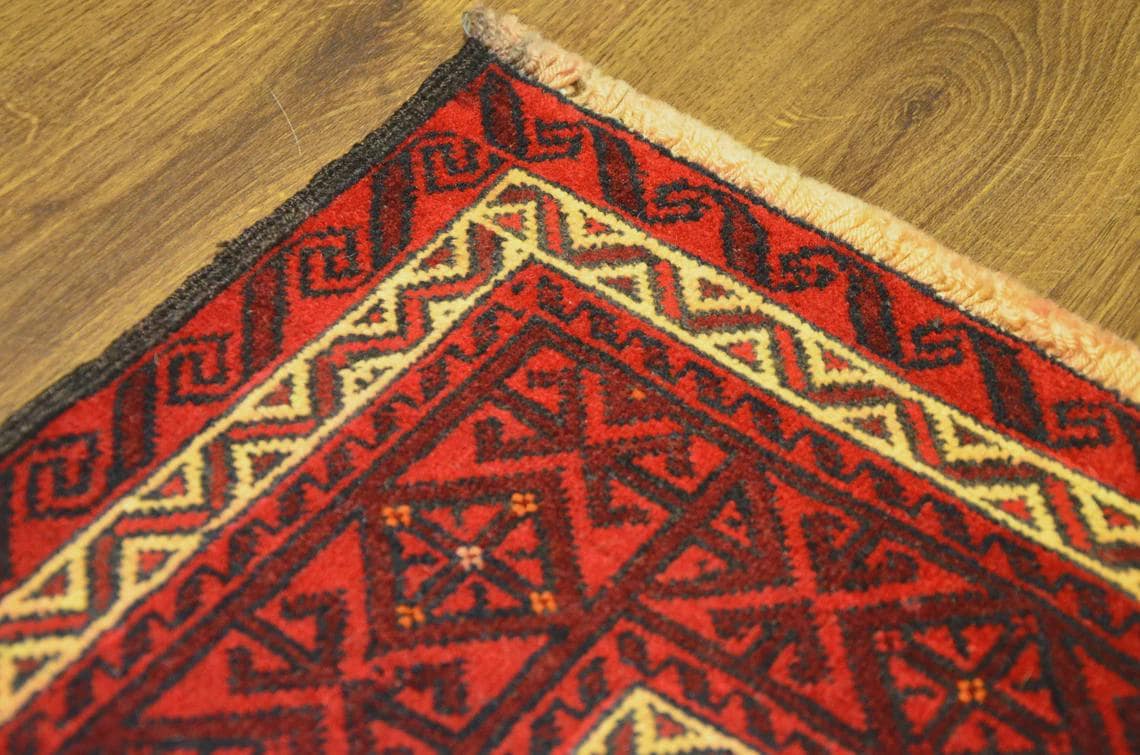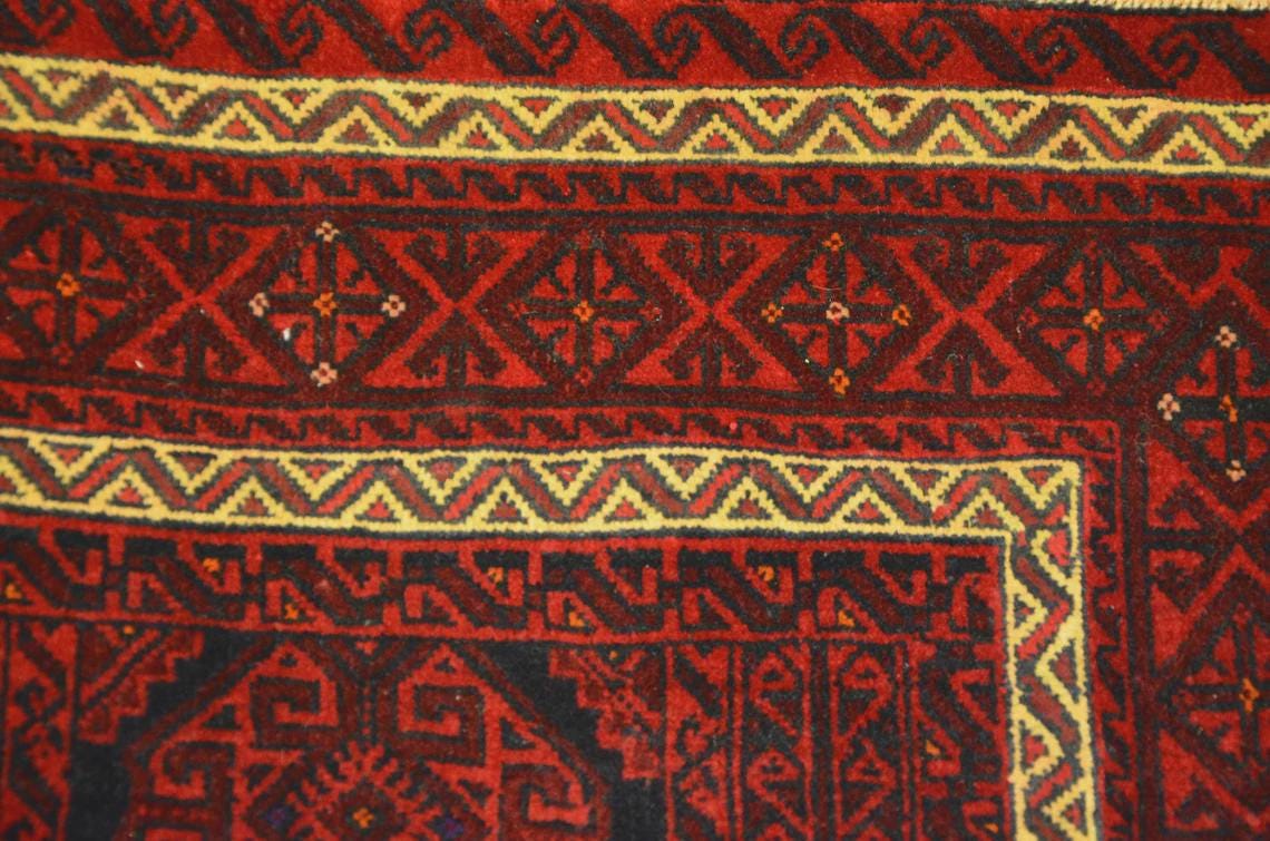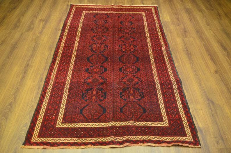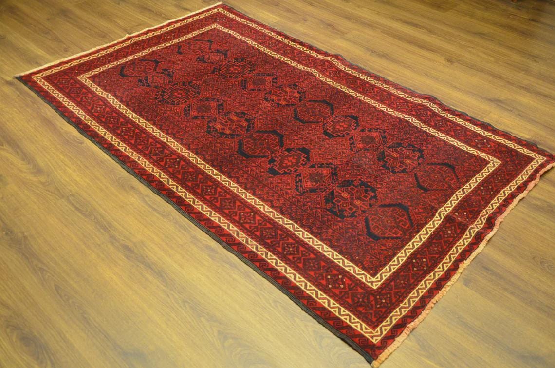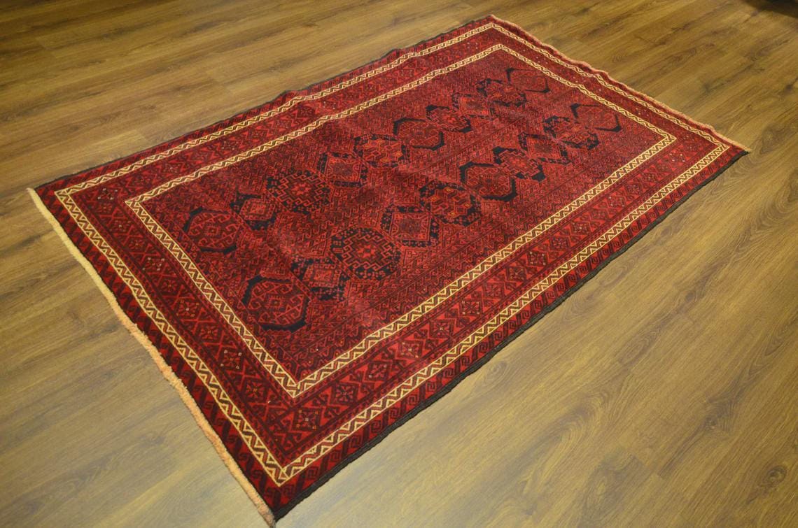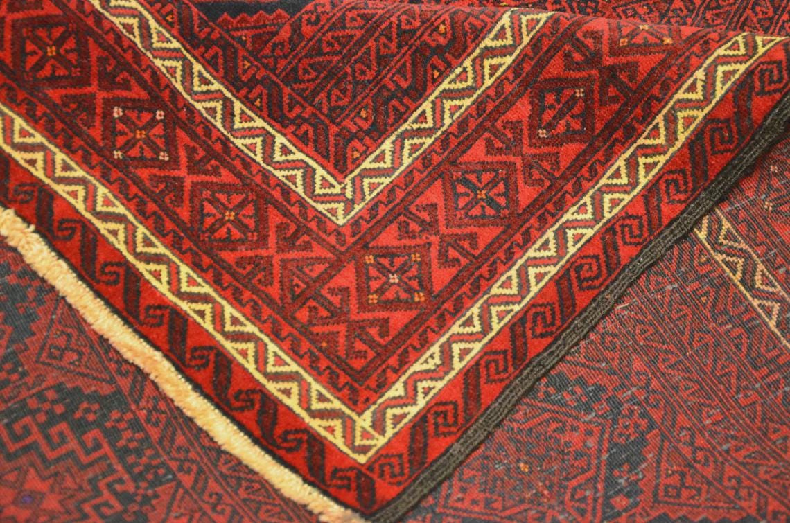 This Anatolian Angora wool rug features a bold tribal design with repeating geometric medallions set across a deep red field. The rich tones of crimson and black are complemented by ivory accents, creating a striking and timeless composition.