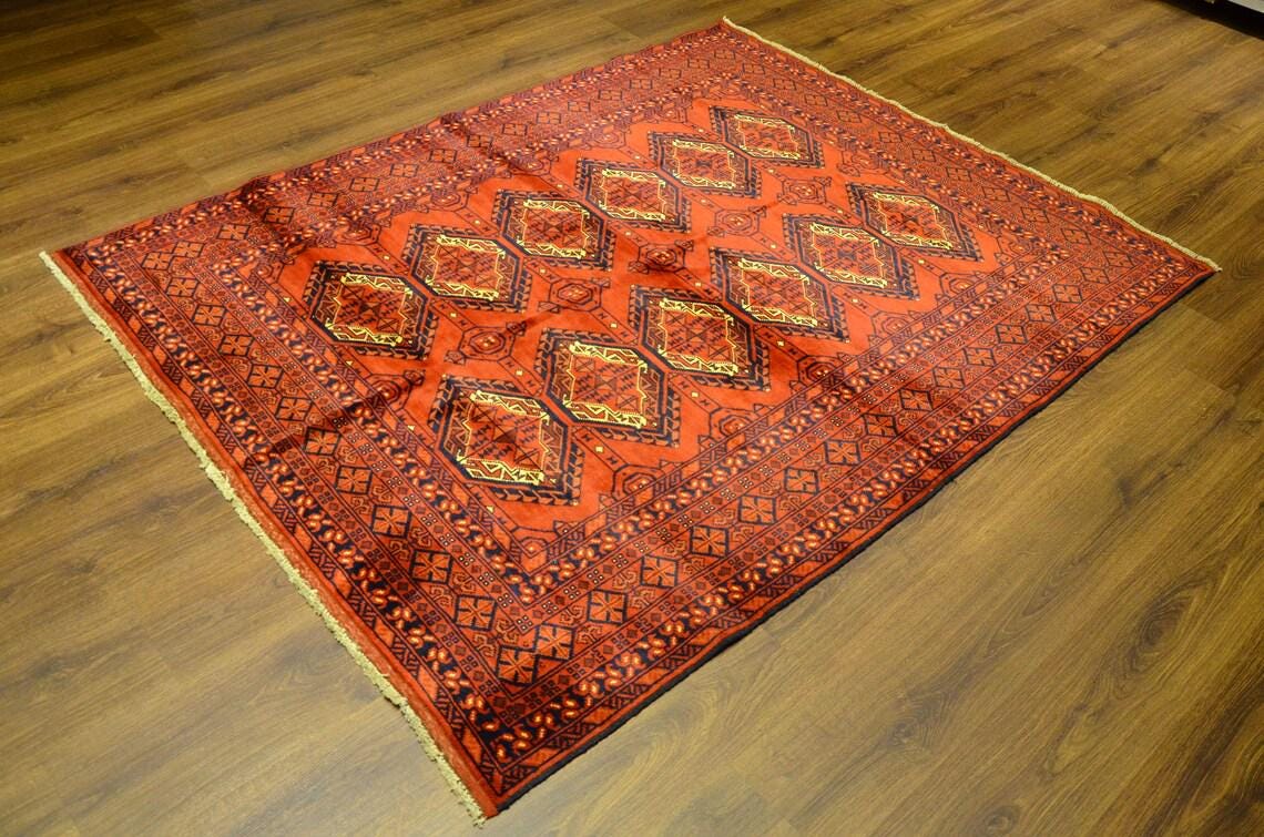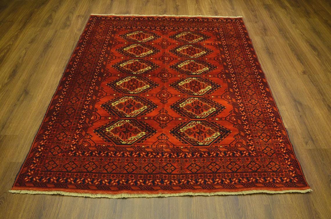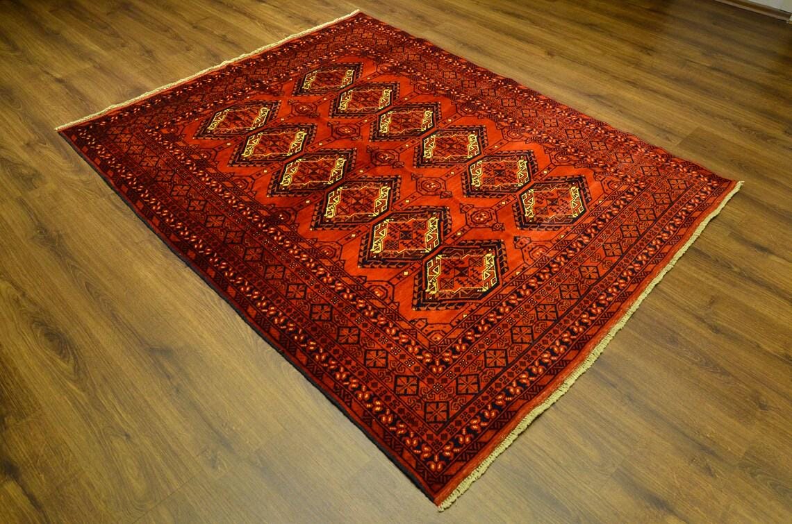 Handmade Turkish Wool Rug 6.4x5 ft Vintage Anatolian Red Tribal Carpet